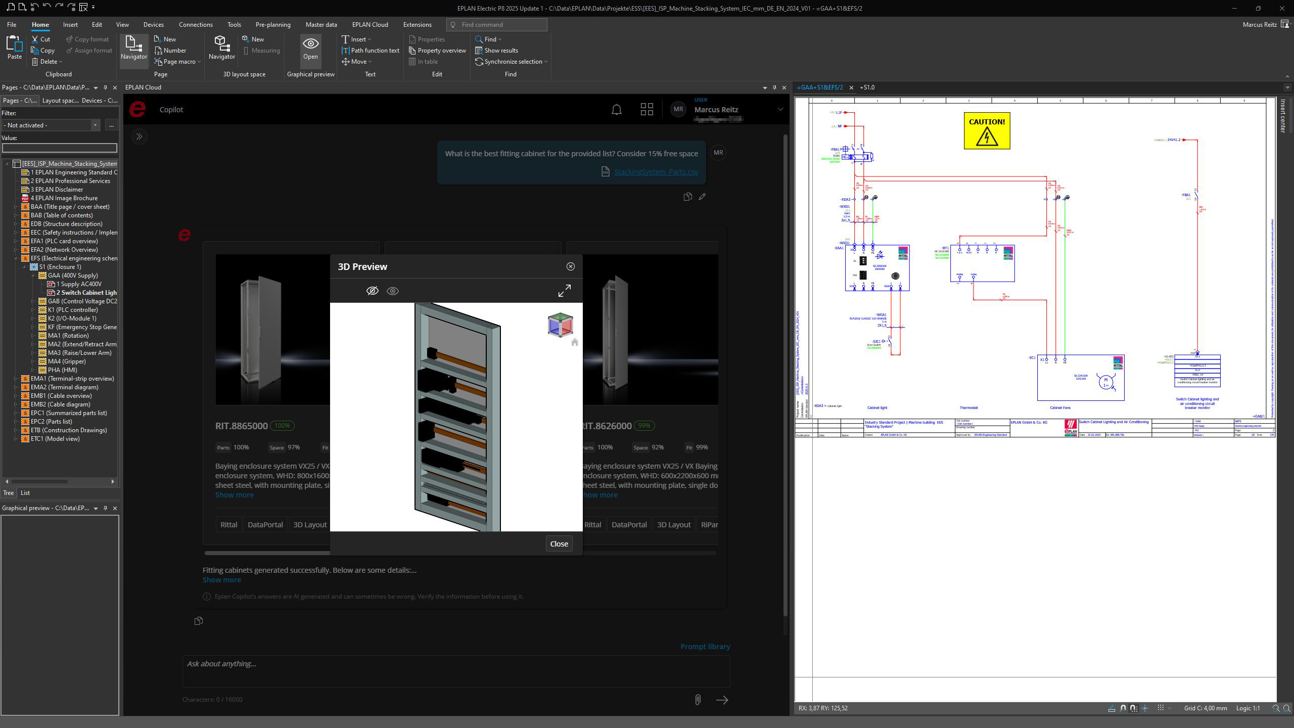 Von der Hannover Messe wandern zwei Use Cases nach Linz. Auf Basis des Microsoft Azure OpenAI Service beruht ein Use Case, mit dem ein Montageplatten-Layout auf KI-Grundlage vollautomatisch generiert werden kann. Die Auswahl des passenden Schranks oder der Montageplatte sowie der Kabelkanäle, Hutschienen und Komponenten gehören dazu. Auf Knopfdruck generiert die KI das passende Layout, und der Anwender weiß sofort, welcher Schrank zu welchem Projekt passt. Nach Experteneinschätzung liegt hier ein Zeiteinsparpotenzial von bis zu 40 %.