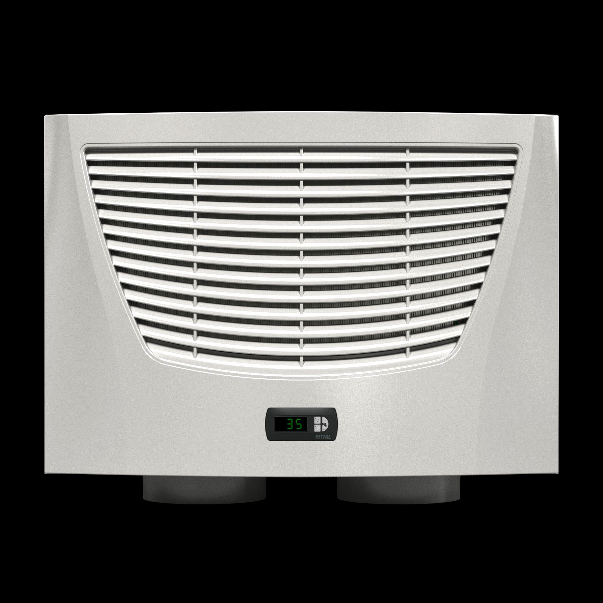 Roof-mounted cooling units for cooling IT equipment Active climate control of individual enclosures for heat losses of up to 3 kW. Target temperature-controlled control of the server inlet temperature.