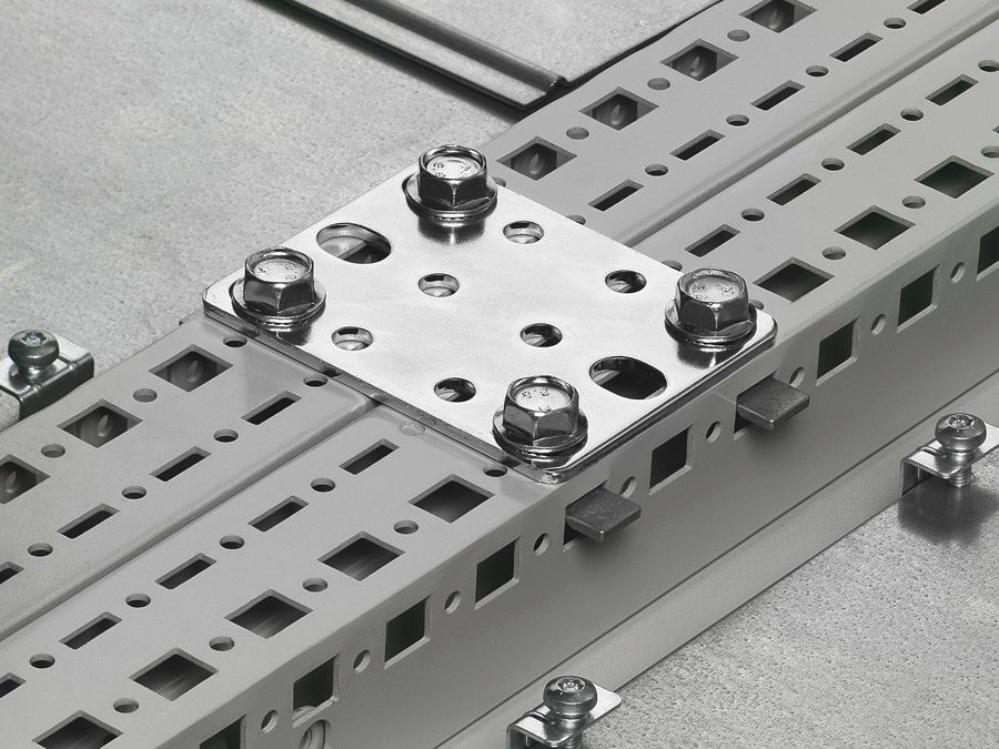 Pour une stabilisation complémentaire ou lorsque les supports de plaque de montage, les cadres pivotants ou les supports de jeux de barres empêchent le montage d'une équerre de juxtaposition.