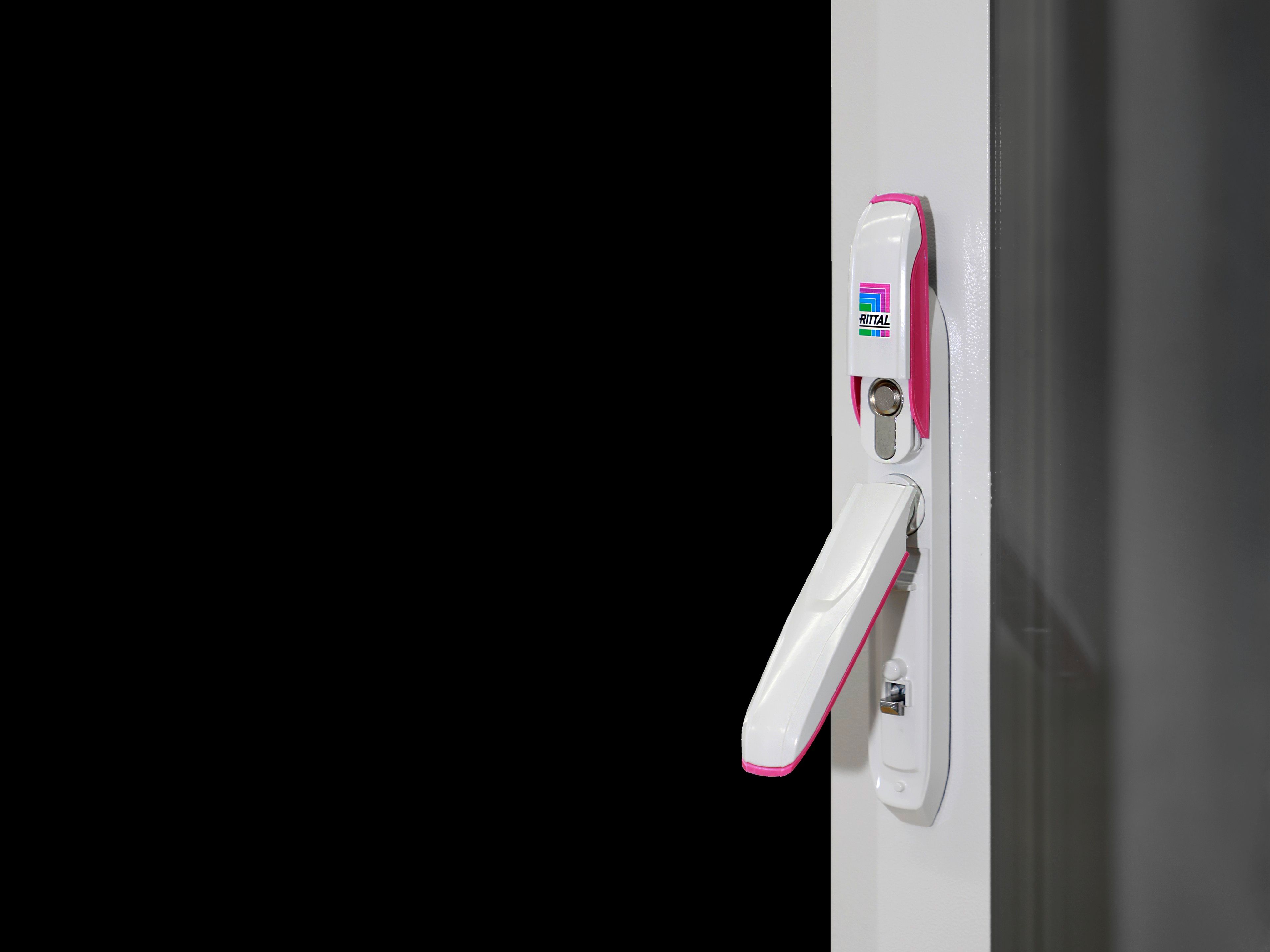 Poignée Confort AX La poignée déverrouillée s'ouvre en se déployant vers l'avant puis elle est pivotée pour permettre l'ouverture de la porte.