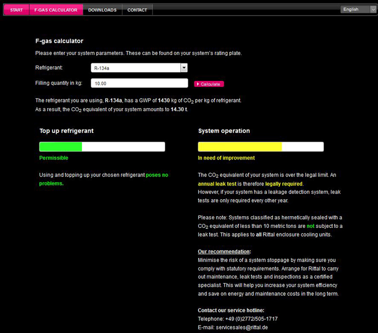 Zo werkt de Rittal F-gascalculator: https://www.rittal.com/de_de/f-gase/rechner.php?lang=en