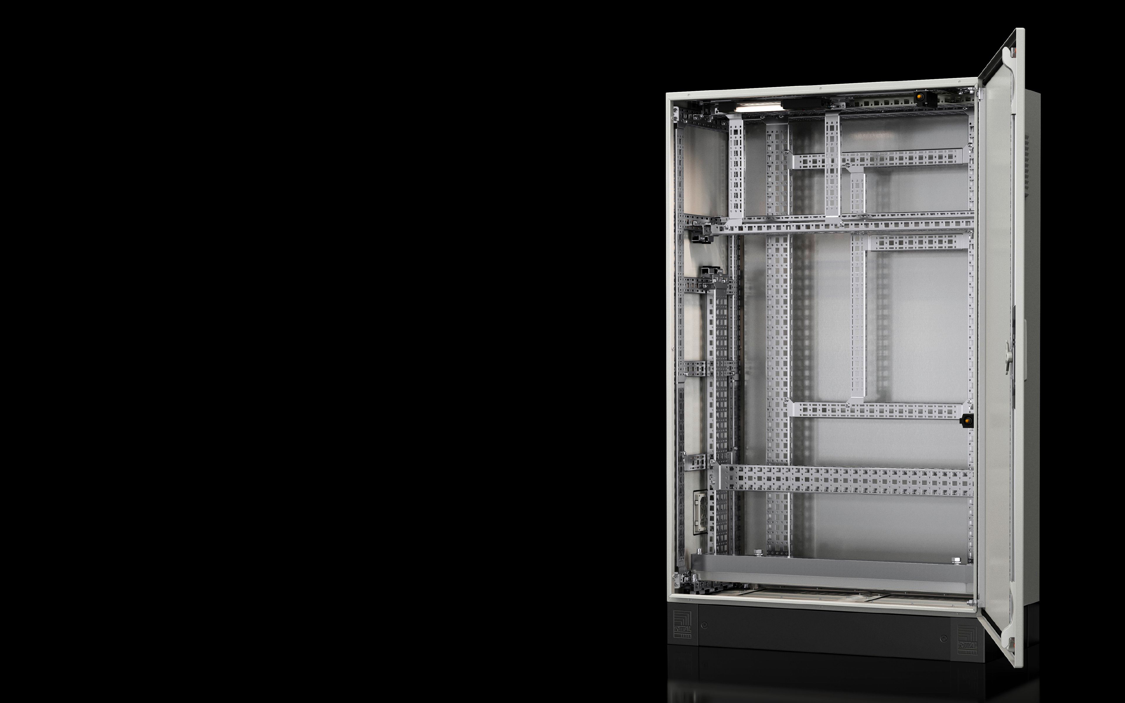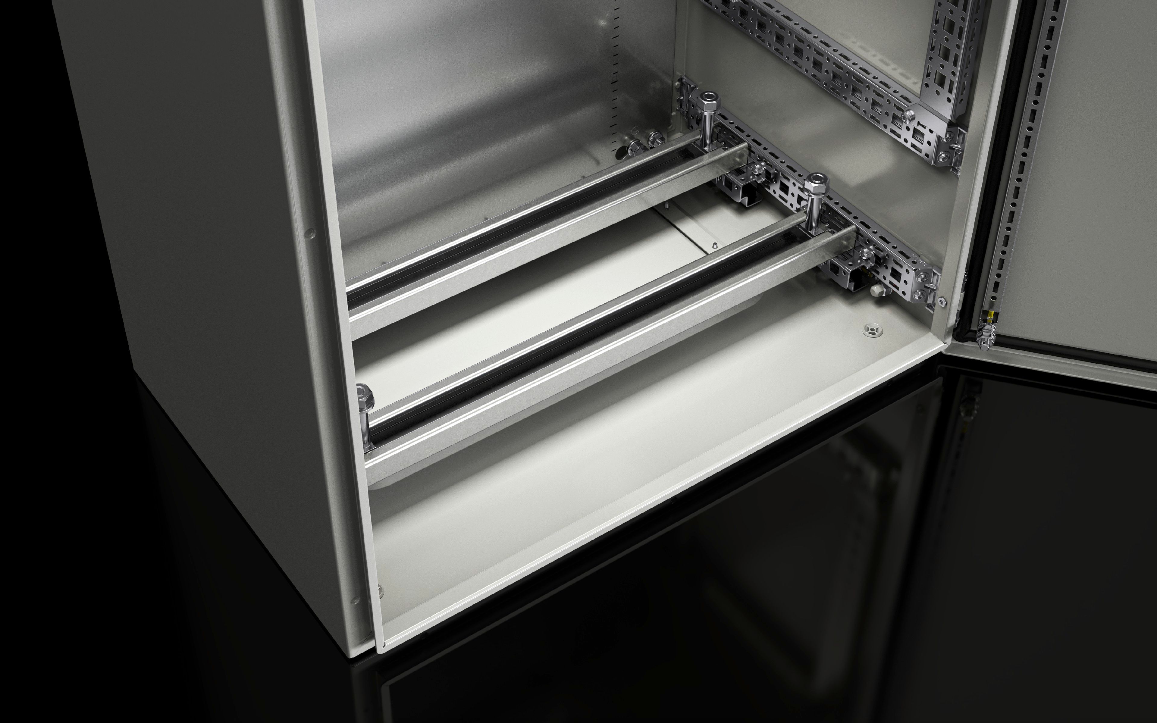- Voor montage in de kast, zonder mechanische bewerking. De montage is rondom aan zij-, bodem- en dakoppervlakken mogelijk. Variabel met 2 gatenpatronen, schept extra montageoppervlak voor bijv. systeemchassis 14 x 39 mm, verlichting, deurschakelaar, deurarretering, kabelslanghouder.