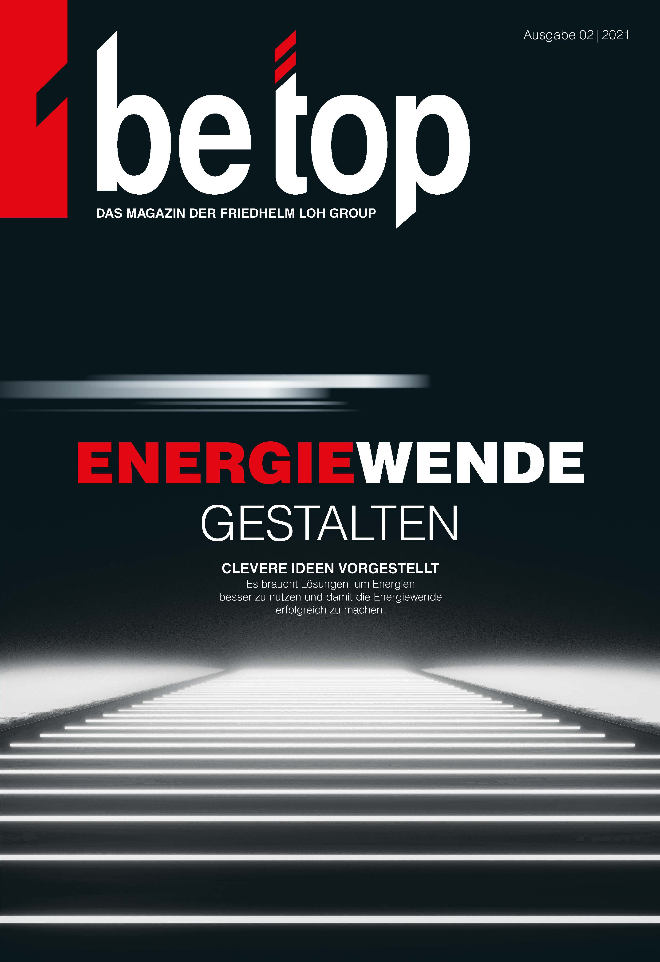 „Формиране на енергийния преход" е заглавието на новия брой на be top, който излезе в края на ноември. Корпоративното списание на групата Friedhelm Loh представя умни идеи и решения за разрастващия се енергиен пазар на повече от 80 страници в тираж от 30 000 екземпляра (на немски, английски и китайски език). Сред темите са най-новите решения за съхранение на енергия в автомобилната индустрия, решения за съхранение на енергия чрез батерии за зарядни станции, комутационна апаратура с дъгова защита, технологии за безопасно захранване на центрове за данни и технологии за енергийно ефективно охлаждащо оборудване. Едновременно с публикуването на новия брой, списанието be top получи за изданията си през 2020 и 2021 г. две награди ICMA и награда Fox.