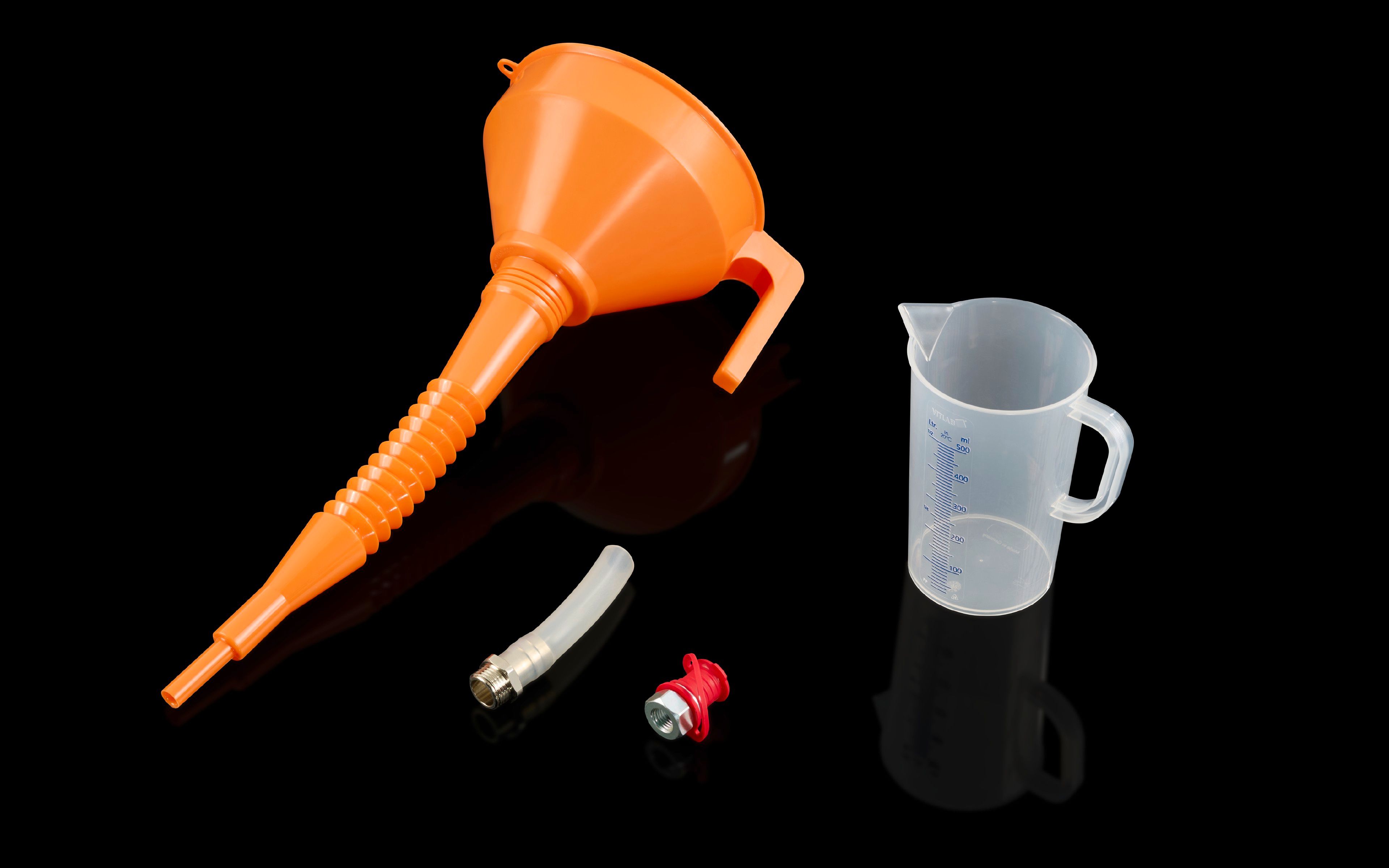 - Oil change kit for CW120 including a funnel, 0.5 l measuring jug, hydraulic vent plug and funnel adaptor for screwing onto the pump