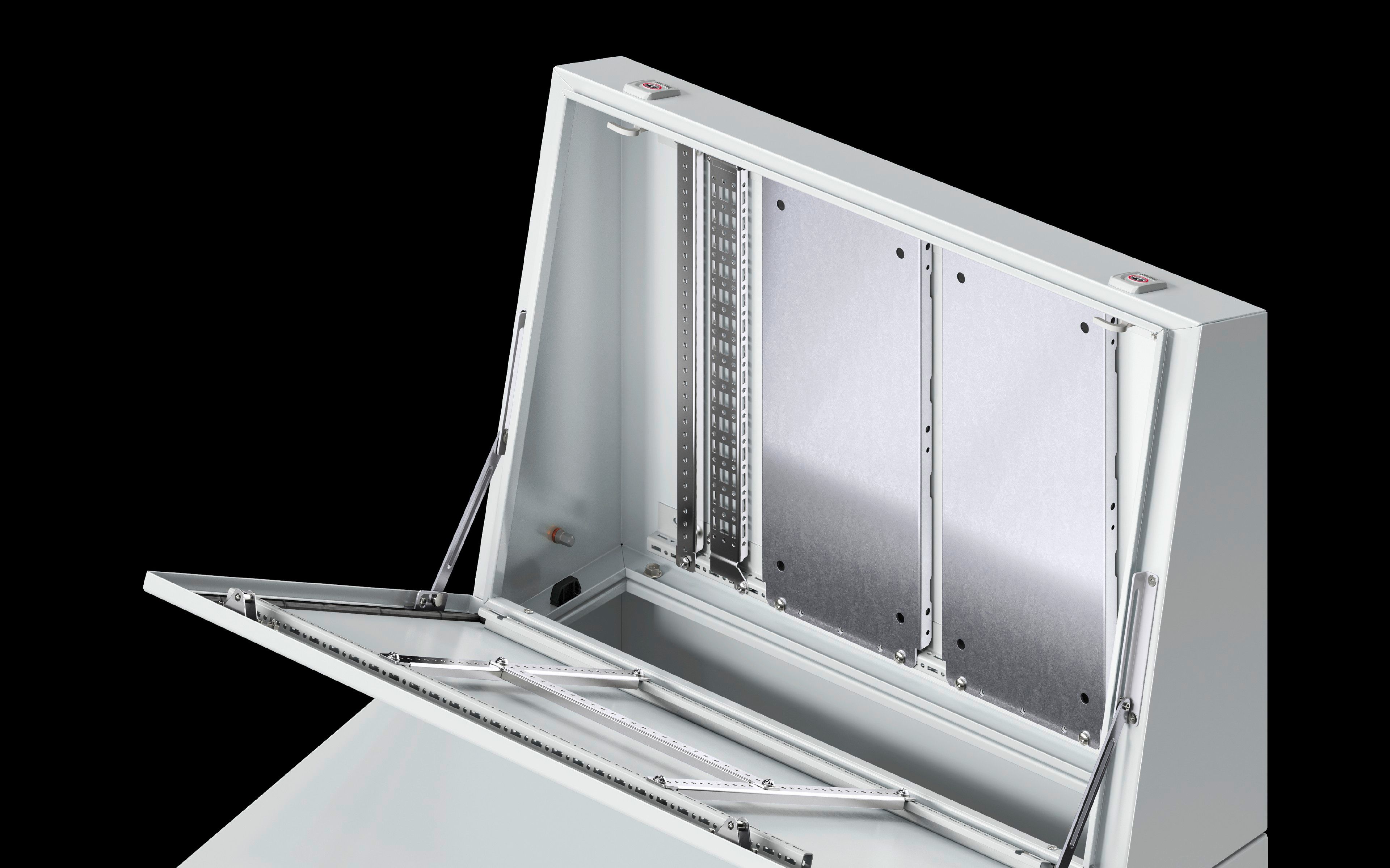 - Caixa e porta: pintura eletroforética por imersão, acabamento externo com pintura eletrostática a pó, pintura texturizada