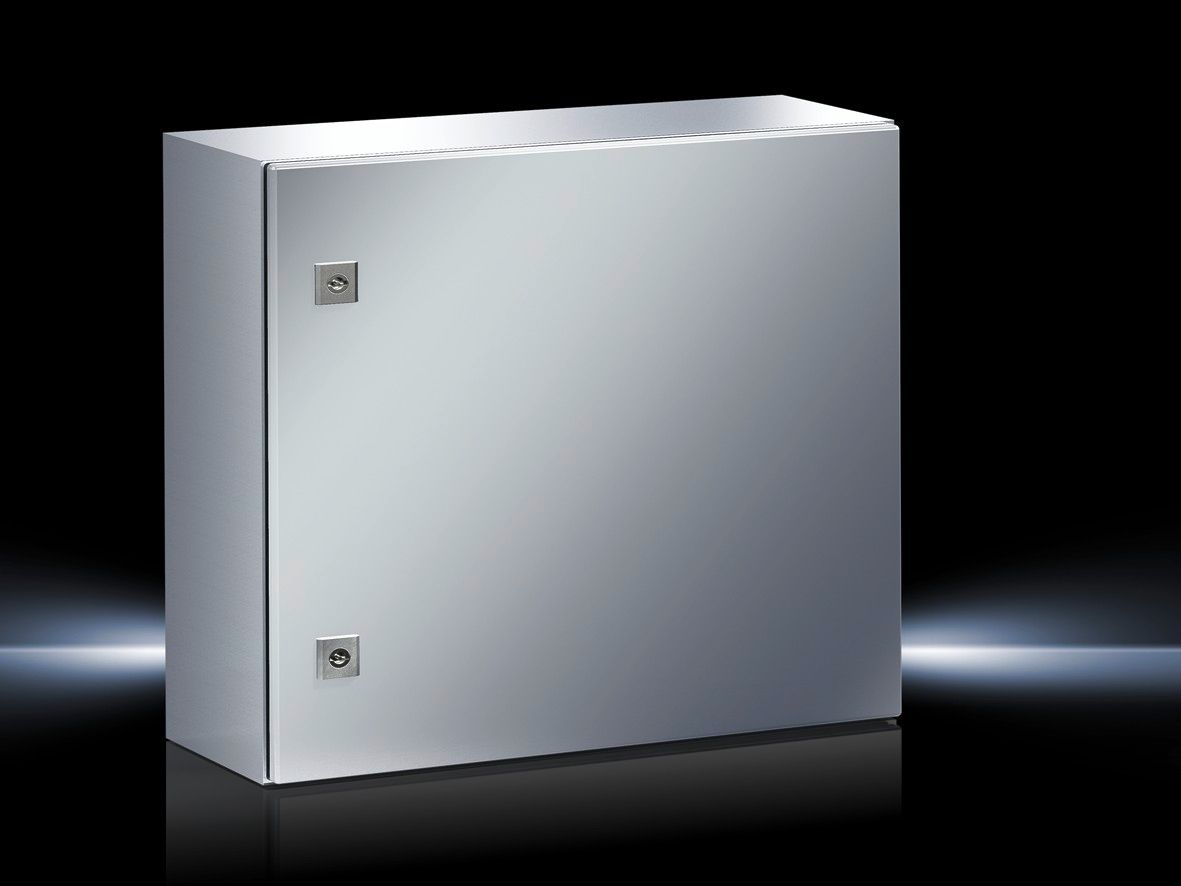 AE Coffret électrique, LHP : 500 x 500 x 300 mm, en acier inoxydable 1.4301, avec plaque de montage, à une porte, deux serrures à came
