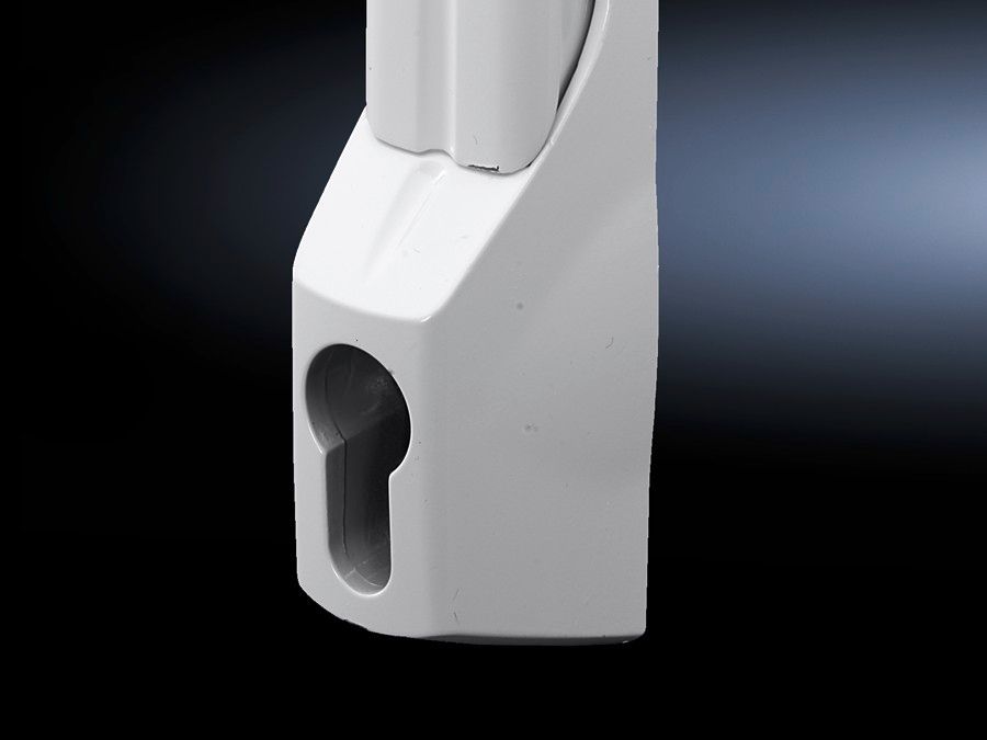 Mini-poignée Confort pour AE avec verrouillage Préparée pour le montage des dispositifs de verrouillage ou pour le montage des serrures semi-cylindriques usuelles du commerce de 40 ou 45 mm ainsi que des serrures de sécurité et des dispositifs à bouton-poussoir.