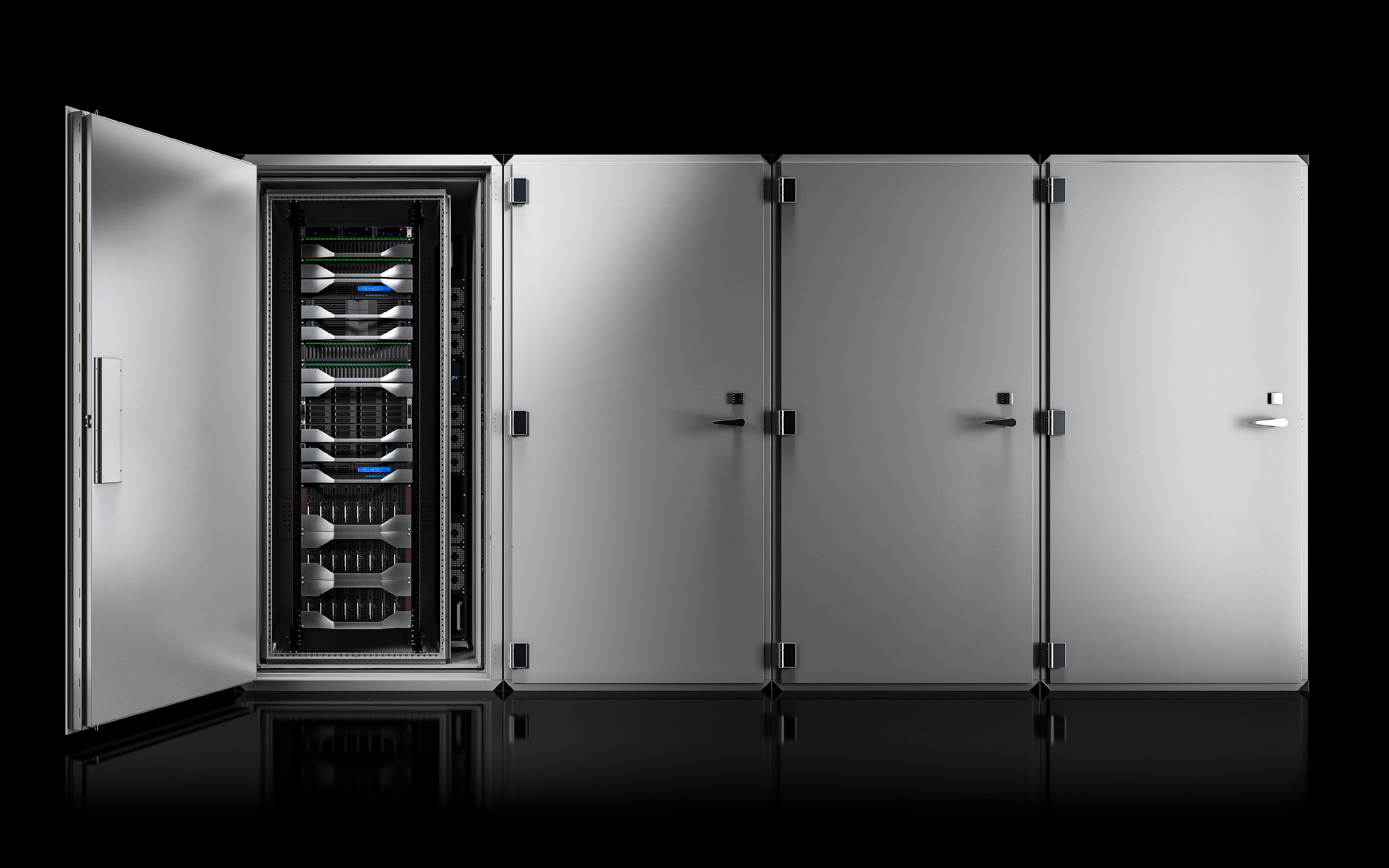 - Das Micro Data Center Level E (MDC Level E) ist ein modular aufgebauter Sicherheitssafe mit Bedienertür vorne und Servicetür hinten. Das MDC Level E verfügt im Standard über eine Kabeleinführung in jedem Seitenelement und ist in verschiedenen Abmessungen erhältlich.