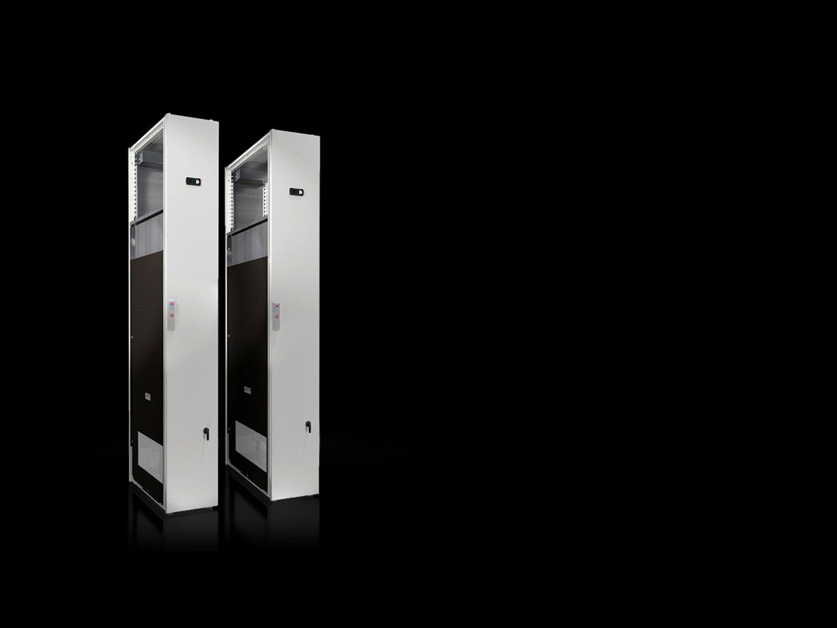 Air/water heat exchanger in the bayed enclosure system VX25. To fit 600 or 800 mm deep, 2,000 mm high VX25 enclosures. Air outlet either with 5 kW on each side or 10 kW on one side only. Flexible options for water connection on the top or bottom of the unit.