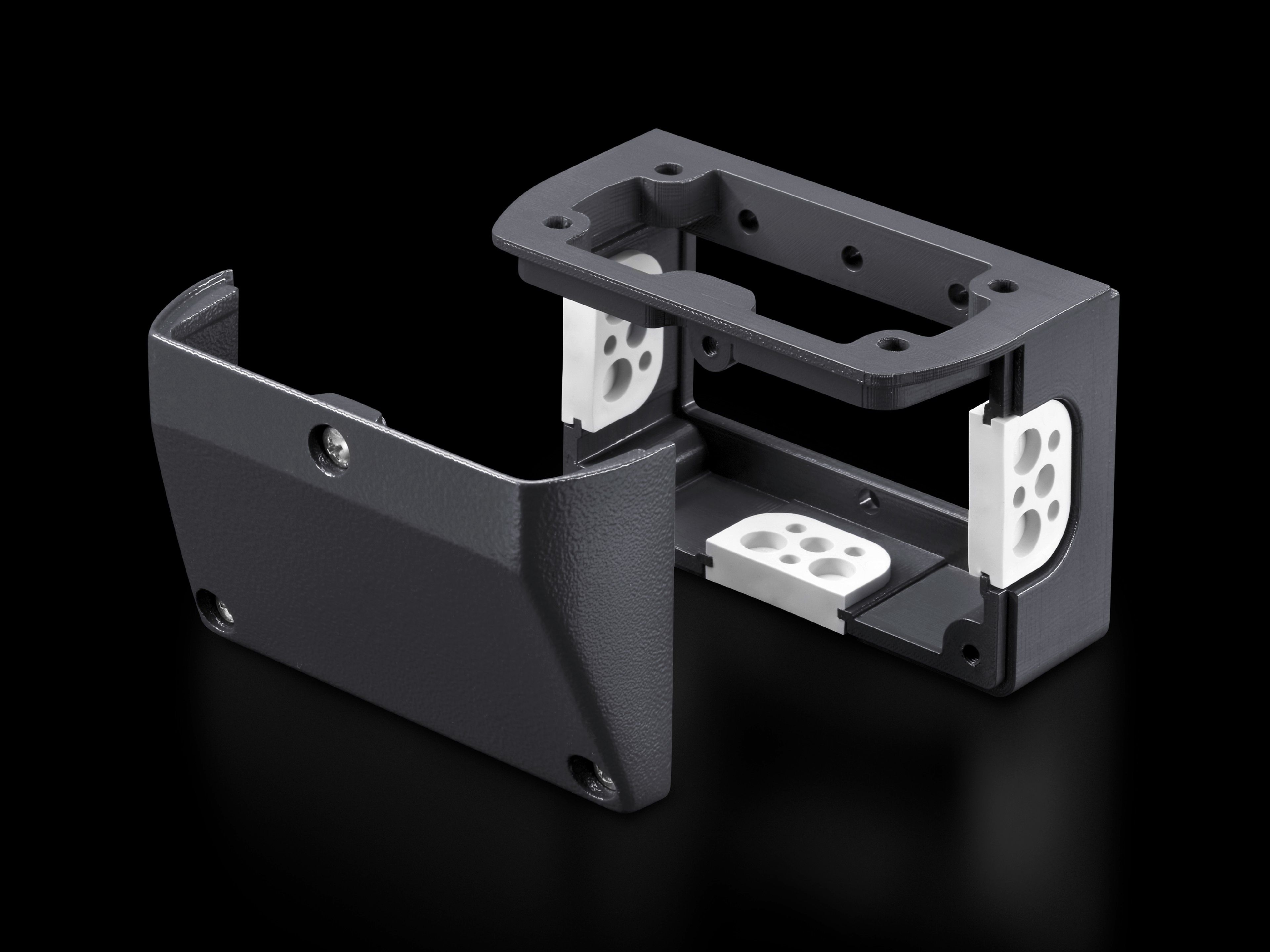 Connection console for support arm connection 120 x 65 mm For rear connection of slimline operating housings. Removable lid for simple cable entry Configurator