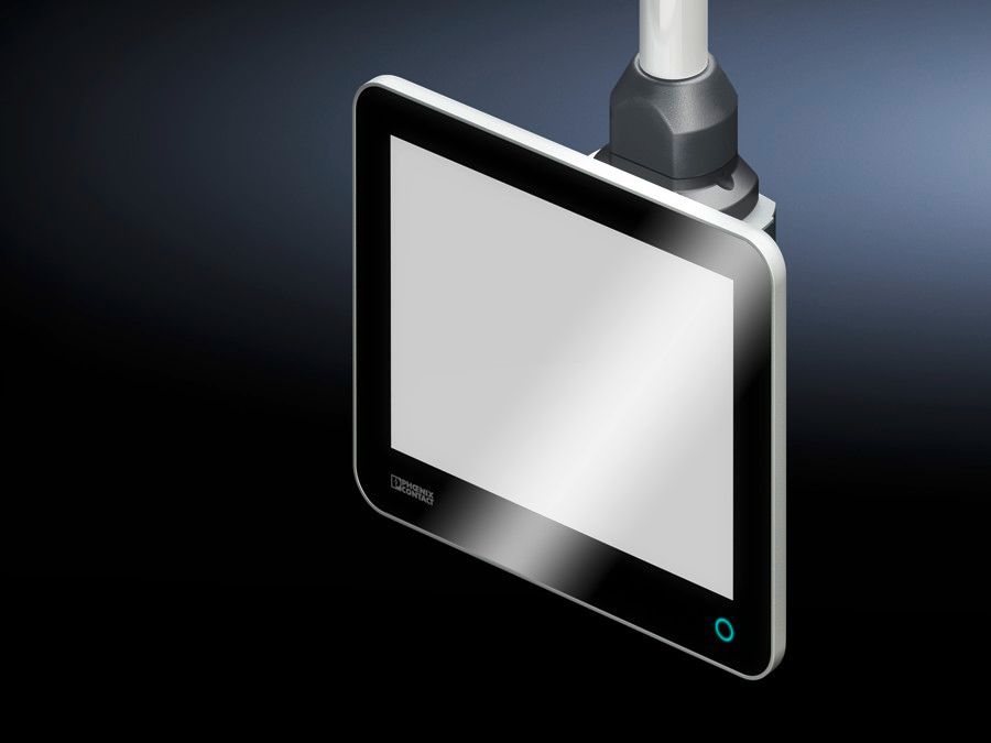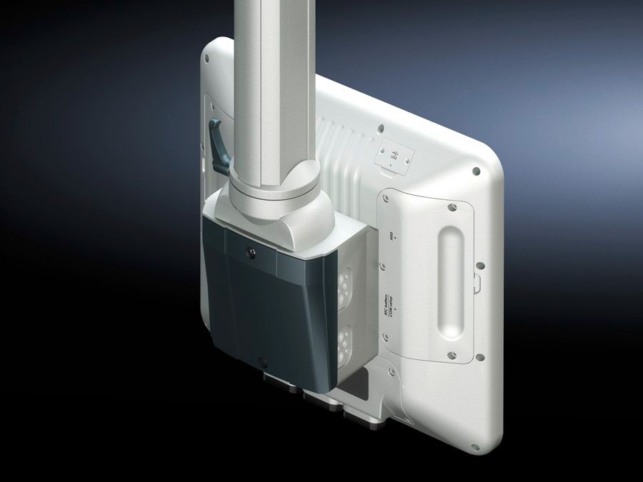 For rear connection of flat command panels, standard TFTs and industrial PCs with VESA 75/100 connection. May be connected to Rittal support arm systems CP 40 and CP 60, and also CP 120 by using an adaptor from support arm connection Ø 130 mm to rectangular 120 x 65 mm.
