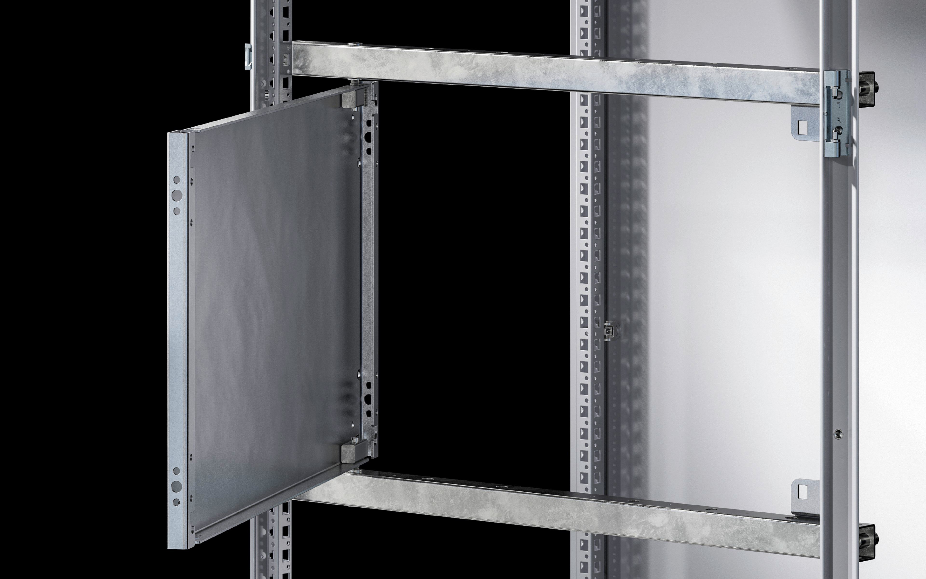 Hinge attachment for partial mounting plate VX In conjunction with the mounting kit for swing frames, small, the partial mounting plate can be hinged to allow access to the components behind it for servicing.