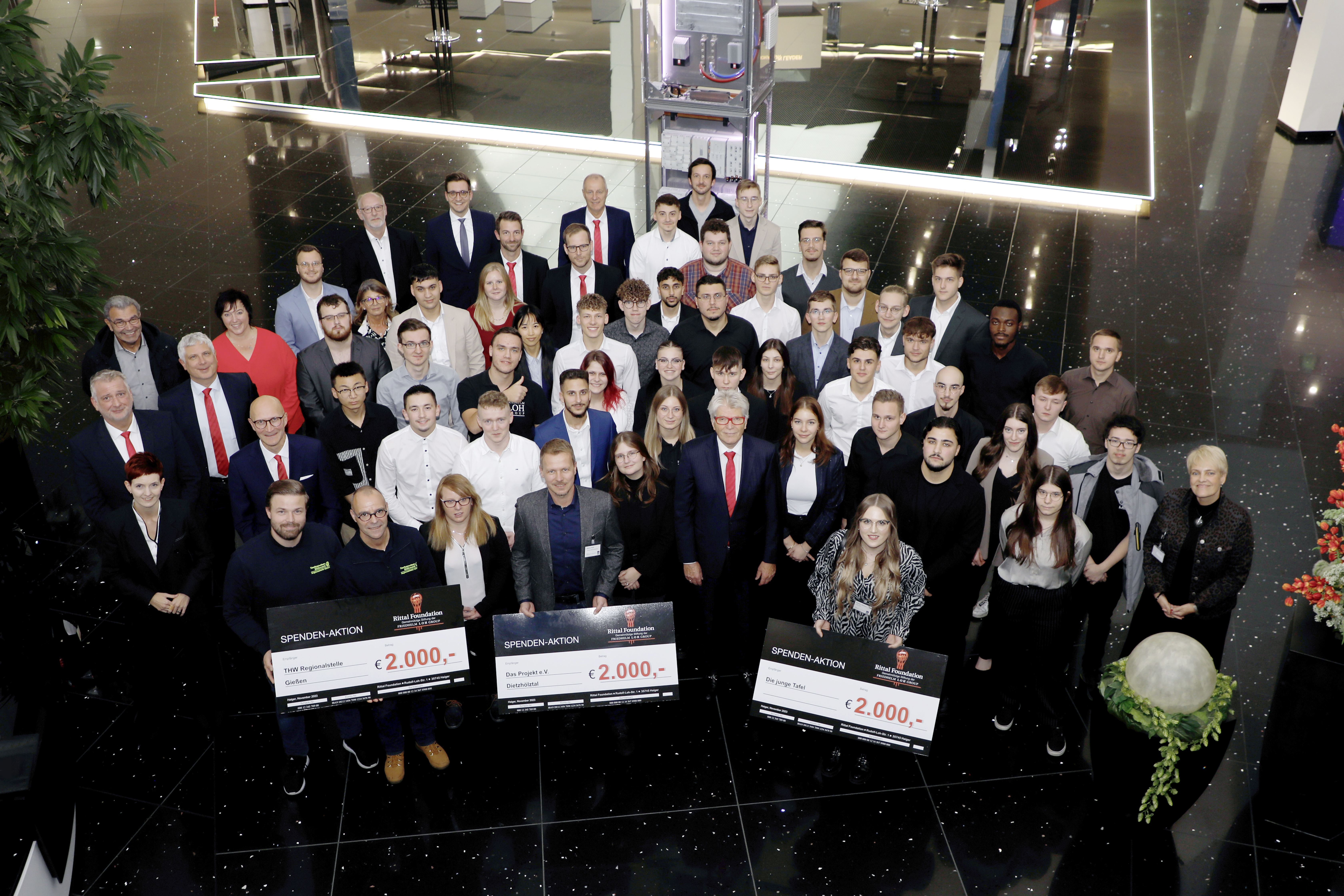 Im Sommer 2023 hatten sich die Auszubildenden über mehrere Tage im ehemaligen Kloster Gnadenthal getroffen, um in die Projektarbeit zu starten. Inspiriert wurden sie von externen Impulsgebern und Ehrenamtsträgern wie etwa Madita Mense von der Tafel Jugend, Ralph Jossa vom Technischen Hilfswerk oder Michael Roth von „Das Projekt – Soziale Arbeit Eschenburg-Dietzhölztal e. V.“. Die Ehrenamtler standen den Azubis nicht nur während der Projekttage mit ihren Erfahrungen unterstützend zur Seite, sondern waren auch bei der Präsentationsveranstaltung in der Rittal Zentrale in Herborn dabei. Dort überreichte ihnen die Rittal Foundation, die gemeinnützige Stiftung der Friedhelm Loh Group, jeweils eine Spende über 2.000 Euro.