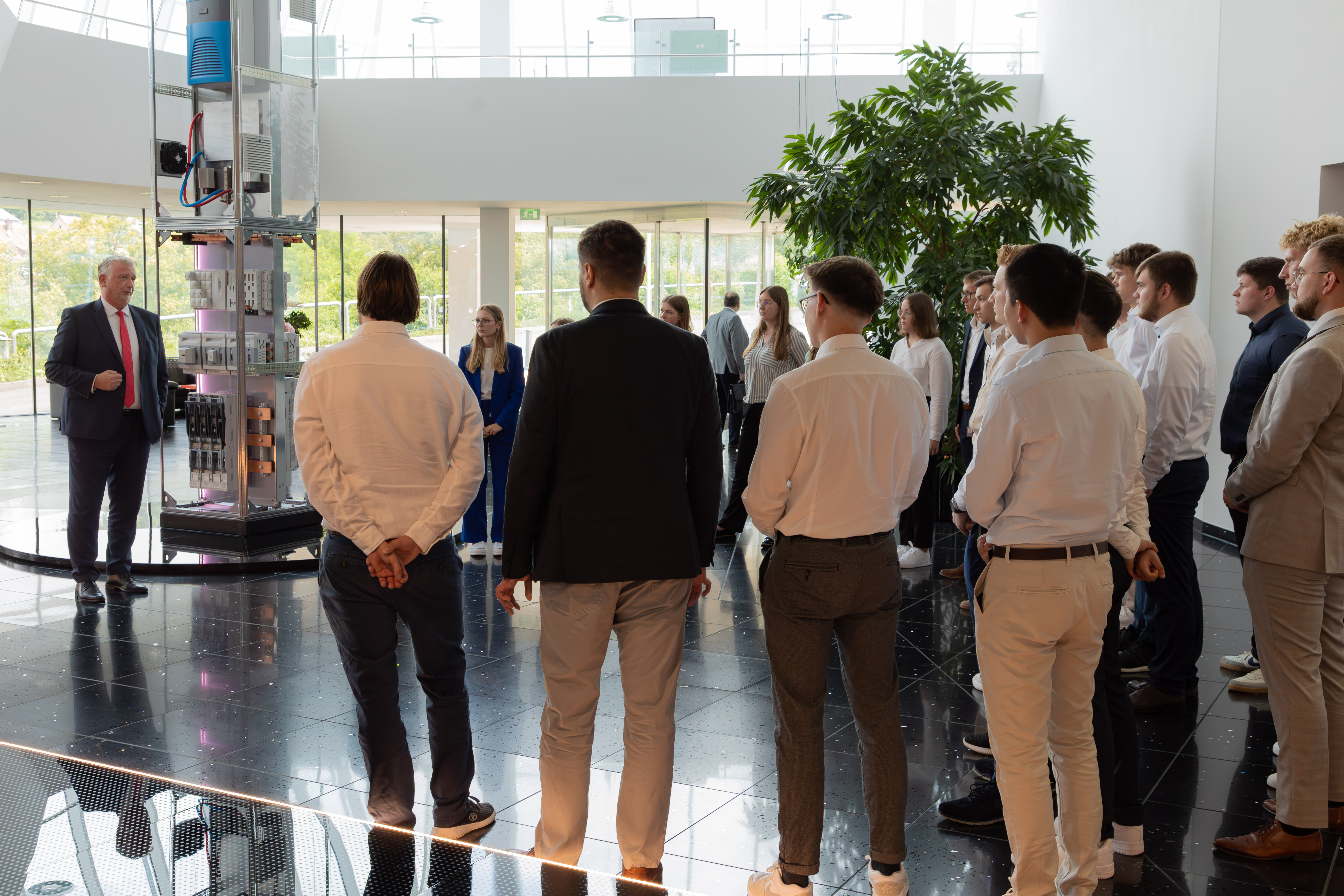 Die Begrüßung der Studierenden an ihrem ersten Arbeitstag übernahmen der Geschäftsführer von Rittal Automation Systems Jochen Trautmann und die Leiterin des FLG-Studierendenprogramms Anke Wojtynowski-Scharf im Rittal Headquarter in Herborn. Trautmann, der aus eigener familiärer Erfahrung das Format StudiumPlus in der Friedhelm Loh Group lobte, hatte einen guten Rat für die Nachwuchskräfte: „Seien Sie mutig und neugierig. Fragen Sie! Nutzen Sie die Chancen, die Ihnen die FLG bietet. Sie haben hervorragende Möglichkeiten, an realen Projekten mitzuwirken und auch internationale Tochtergesellschaften kennenzulernen.“ Wojtynowski-Scharf machte deutlich, dass die Studierenden dabei eine sehr gute Betreuung an ihrer Seite haben, die sie unterstützt: „Ob Mentor, Koordinator oder Fachbetreuer – hier ist immer jemand für euch da. Baut euch ein großes Netzwerk auf.“