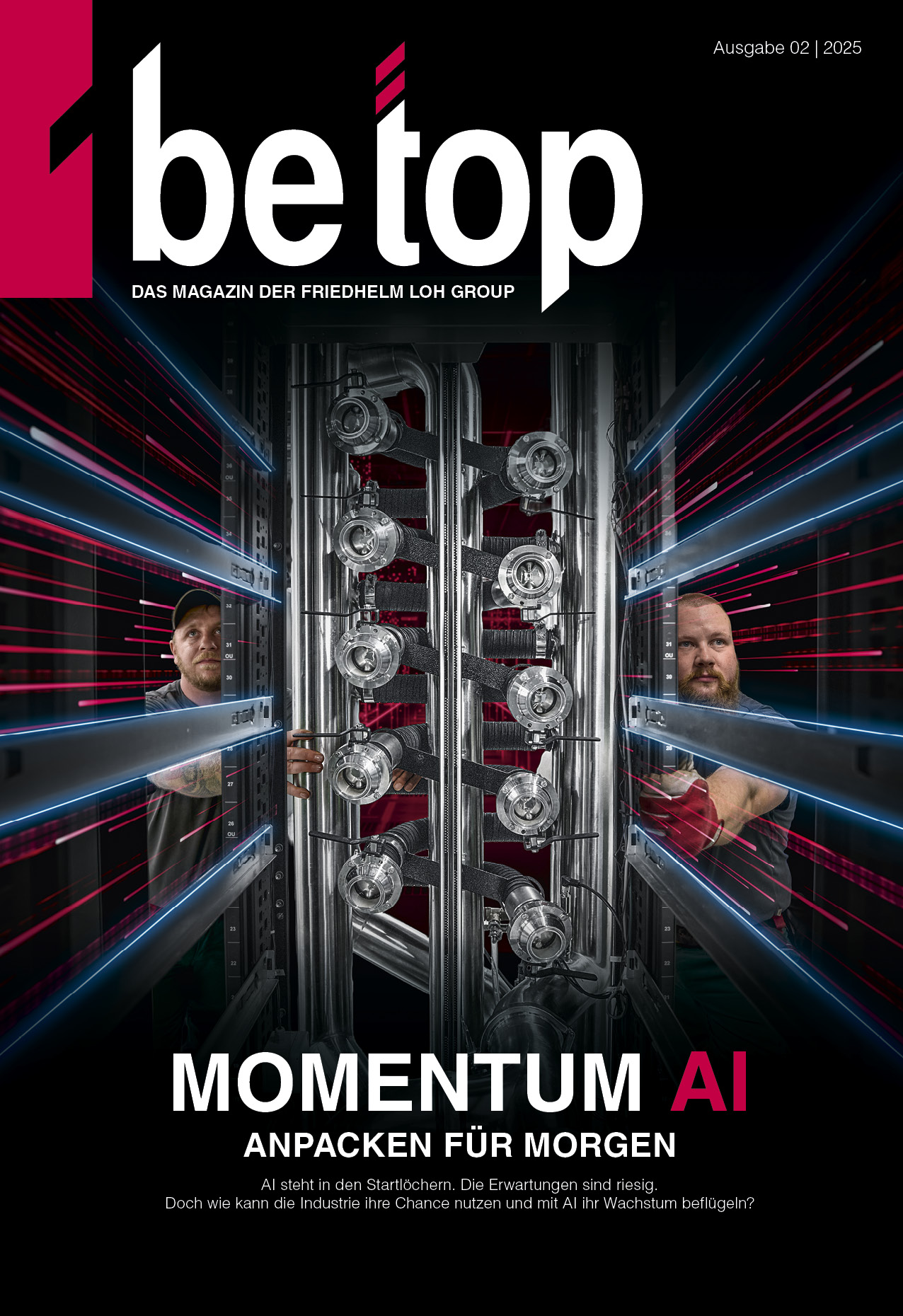 AI ist überall. Die Chancen sind riesig. Auch für die Industrie – wenn es gelingt die neuen AI-Technologien aus der Digitalwirtschaft mit dem Know-how der Industrie zu verbinden. Wie das konkret gelingen kann, zeigt die neue Ausgabe der be top. Das Unternehmensmagazin der Friedhelm Loh Group wartet mit konkreten Use Cases, neuen Technologien und spannenden Insights von AI-Experten auf und macht deutlich, wie Industrie und Digitalwirtschaft von neuesten Technologien profitieren können.