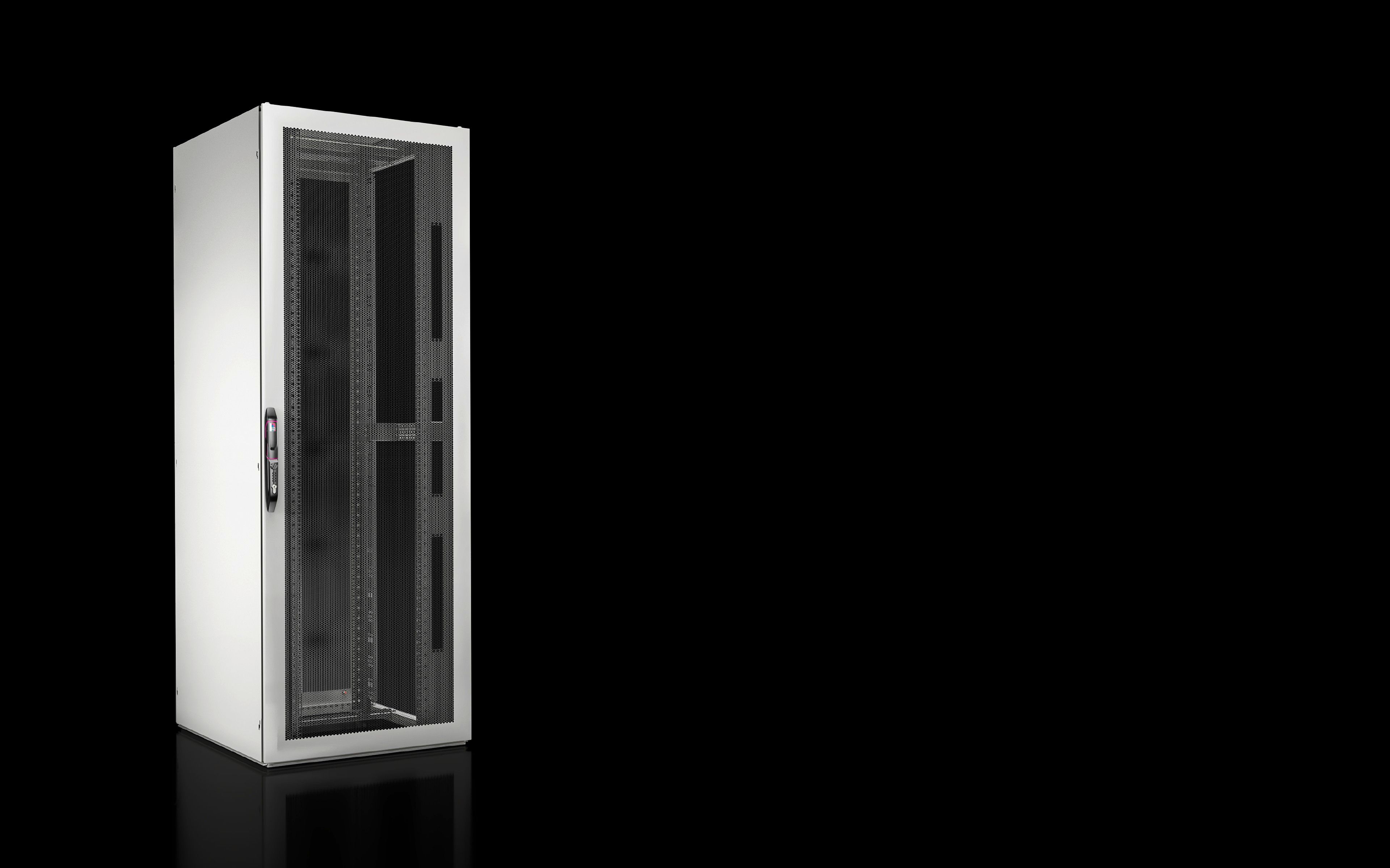 - Integrierte Luftleitbleche und eine Trennwand sorgen für eine optimale Luftführung, die Kabeltrasse ermöglicht eine einfache Kabelführung und der Komfortgriff inklusive Zahlencodeschloss sorgt für erhöhten Zugriffsschutz. Darüber hinaus ist der TX Colo optimal ausgelegt auf Raumklimatisierung dank belüfteter Türen.
