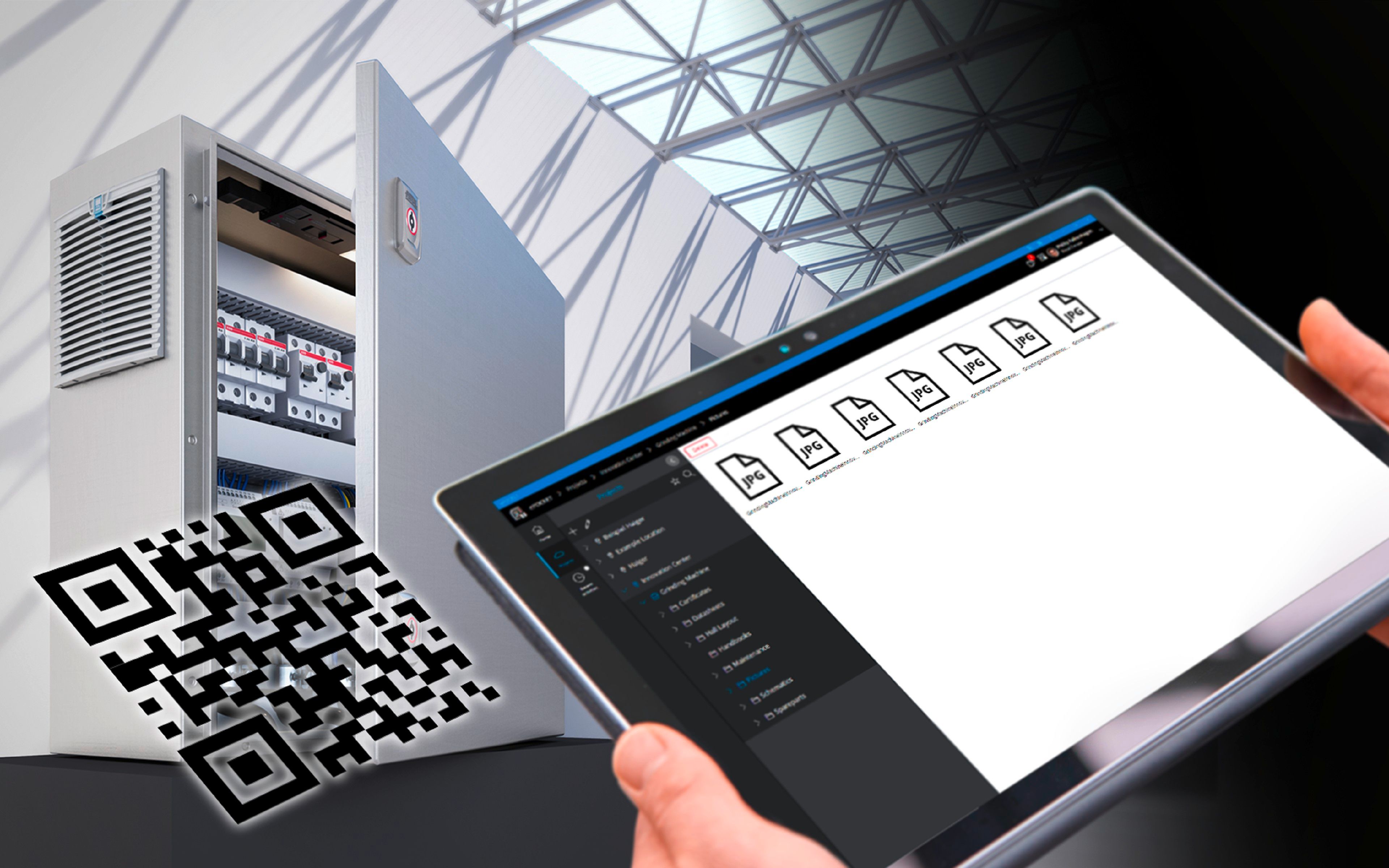 Gedruckter QR Code auf Korpus, Tür und Typenschild