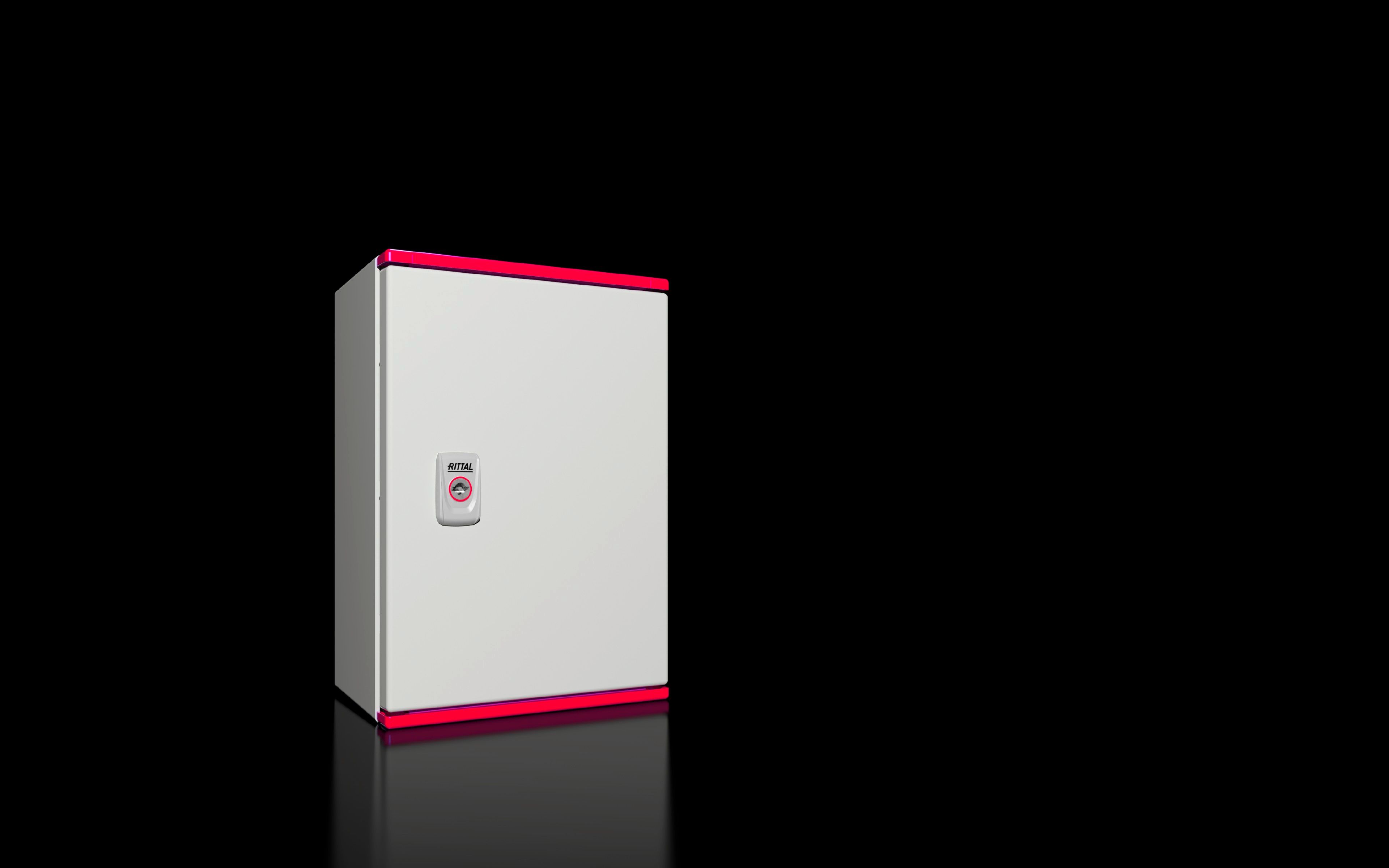 - Gehäuse mit scharnierter Tür, rundum geschlossen, 3 mm Doppelbart-Verschluss
