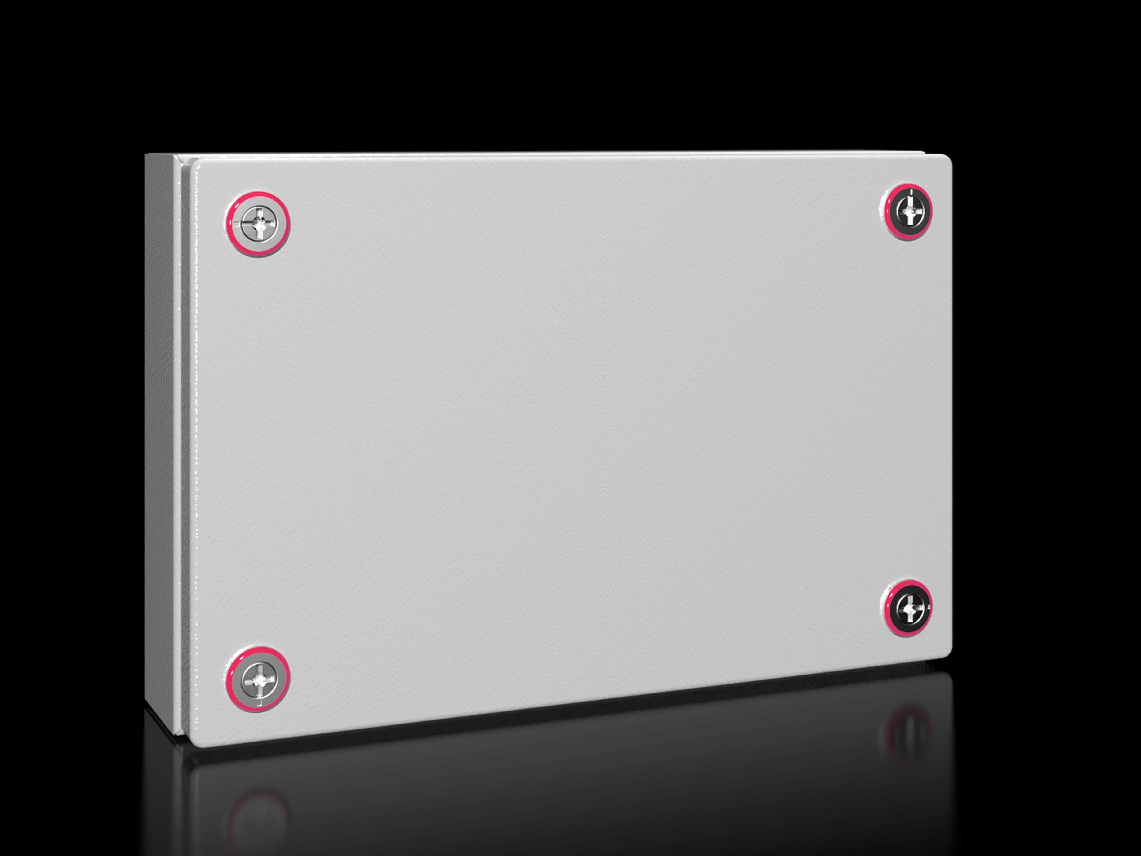 - KX Klemmenkasten, BHT: 300x200x80 mm, Stahlblech, ohne Montageplatte, mit Deckel, ohne Flanschplatte