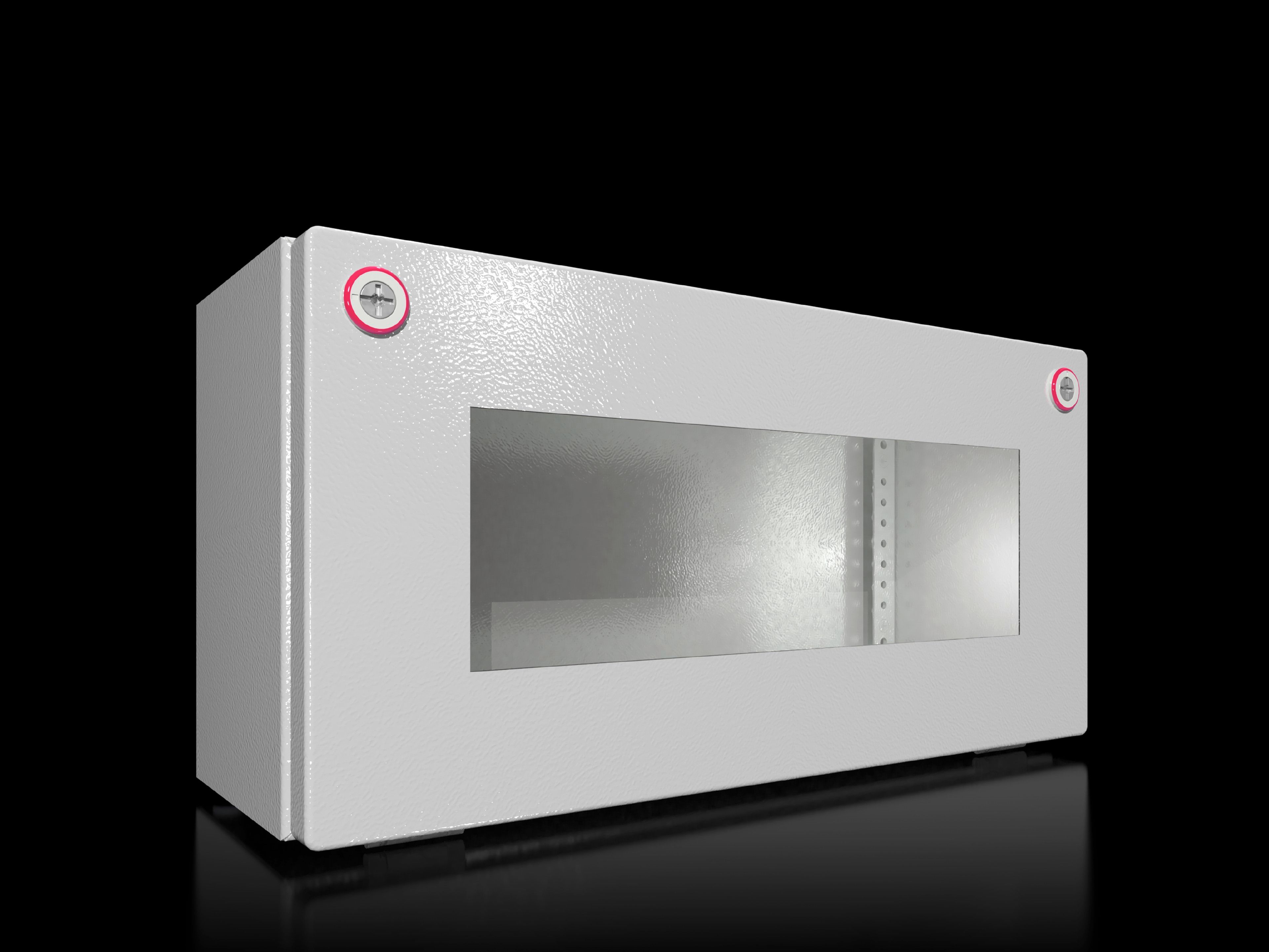 - Gehäuse und Deckel: tauchgrundiert, außen pulverbeschichtet, Strukturlack