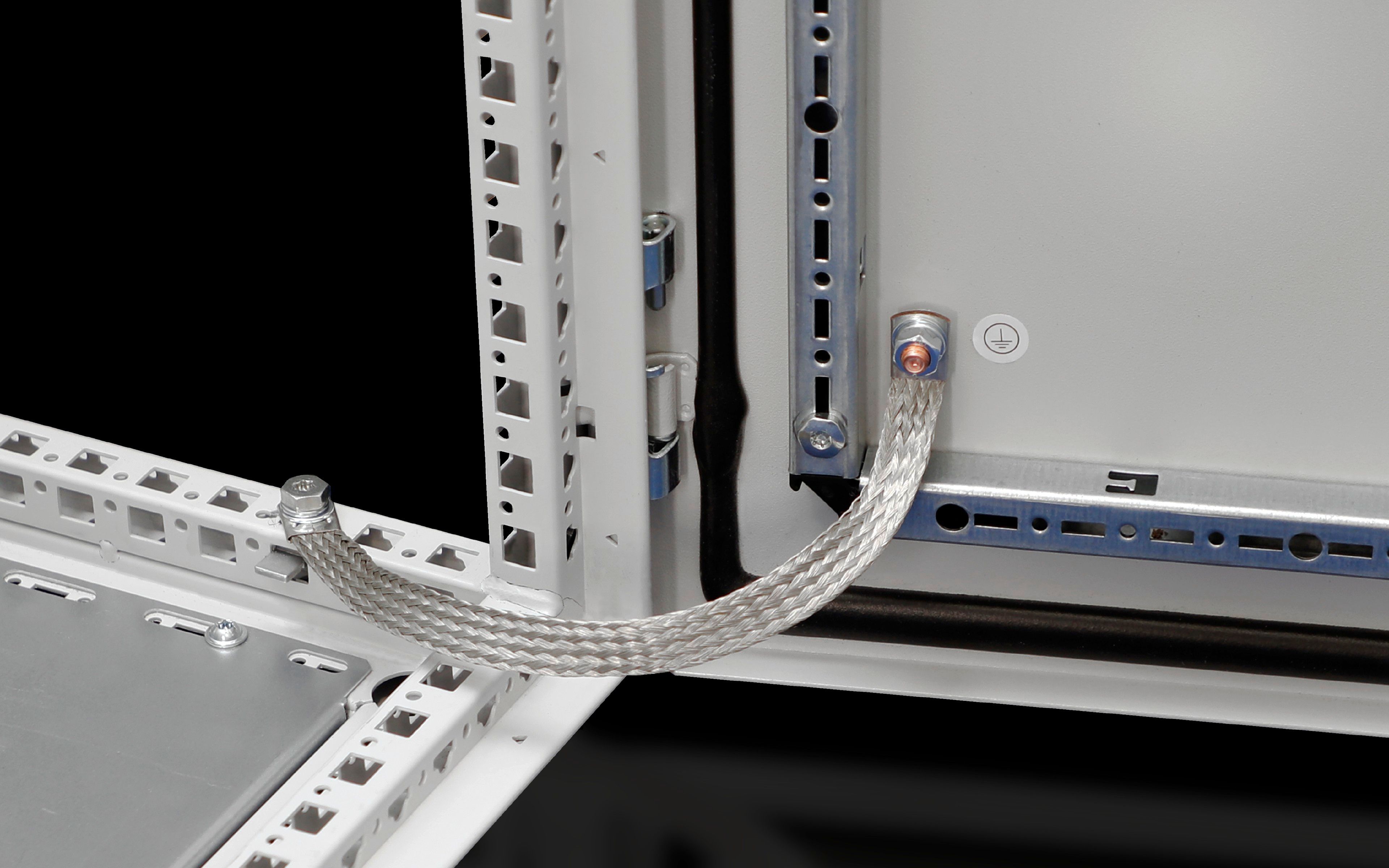 - Bitte beachten Sie die Montageanleitung oder Schutzleiterbroschüre des jeweiligen Schrank- oder Gehäusesystems.