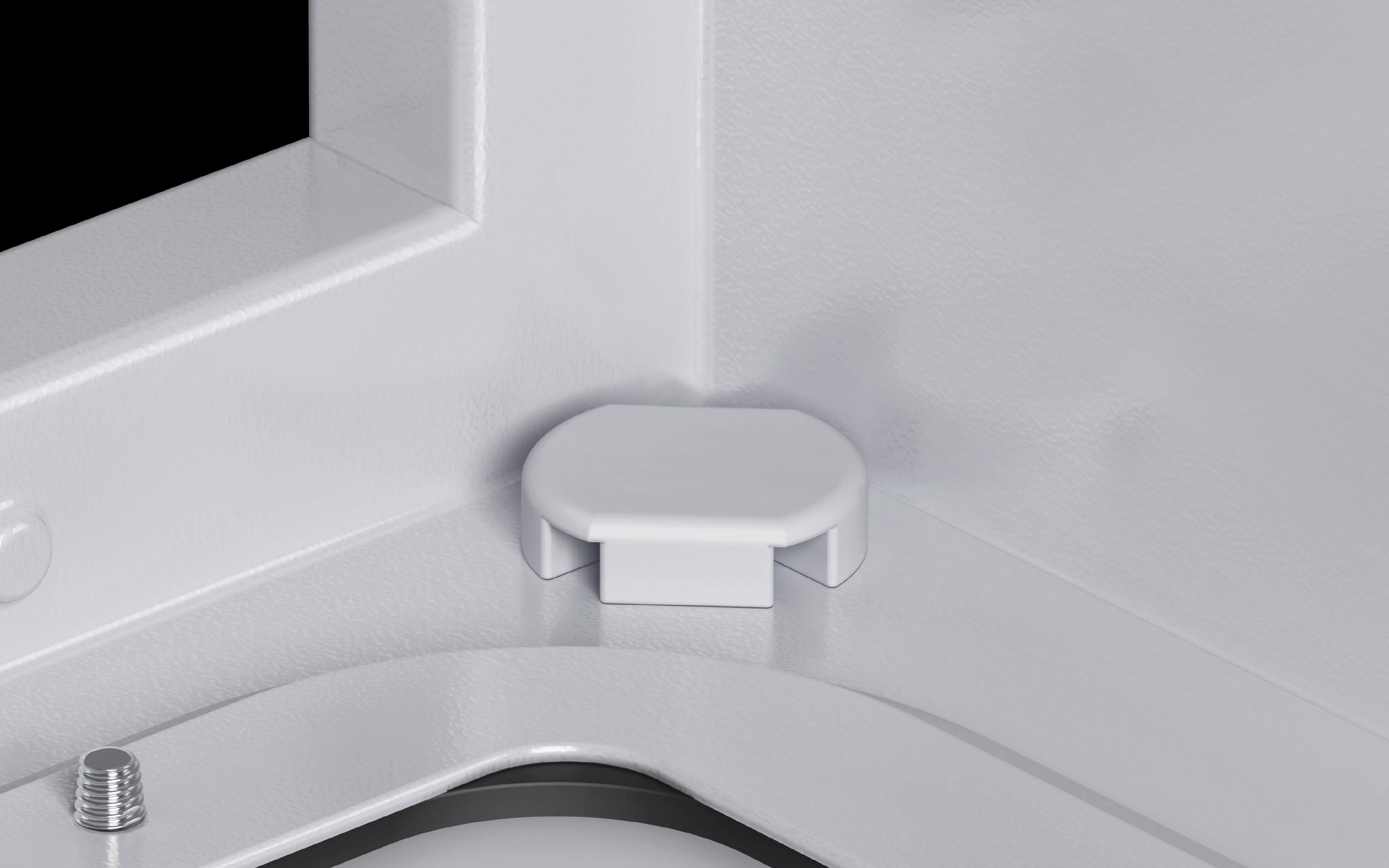 - Zum sicheren Kondensatablauf von innen und Schutz gegen Spritzwasser von außen (Labyrinthwirkung). Erforderlicher Bohrungsdurchmesser 16 mm. (Bei AX-Stahlblech ist die Bohrung im Boden bereits vorhanden.)