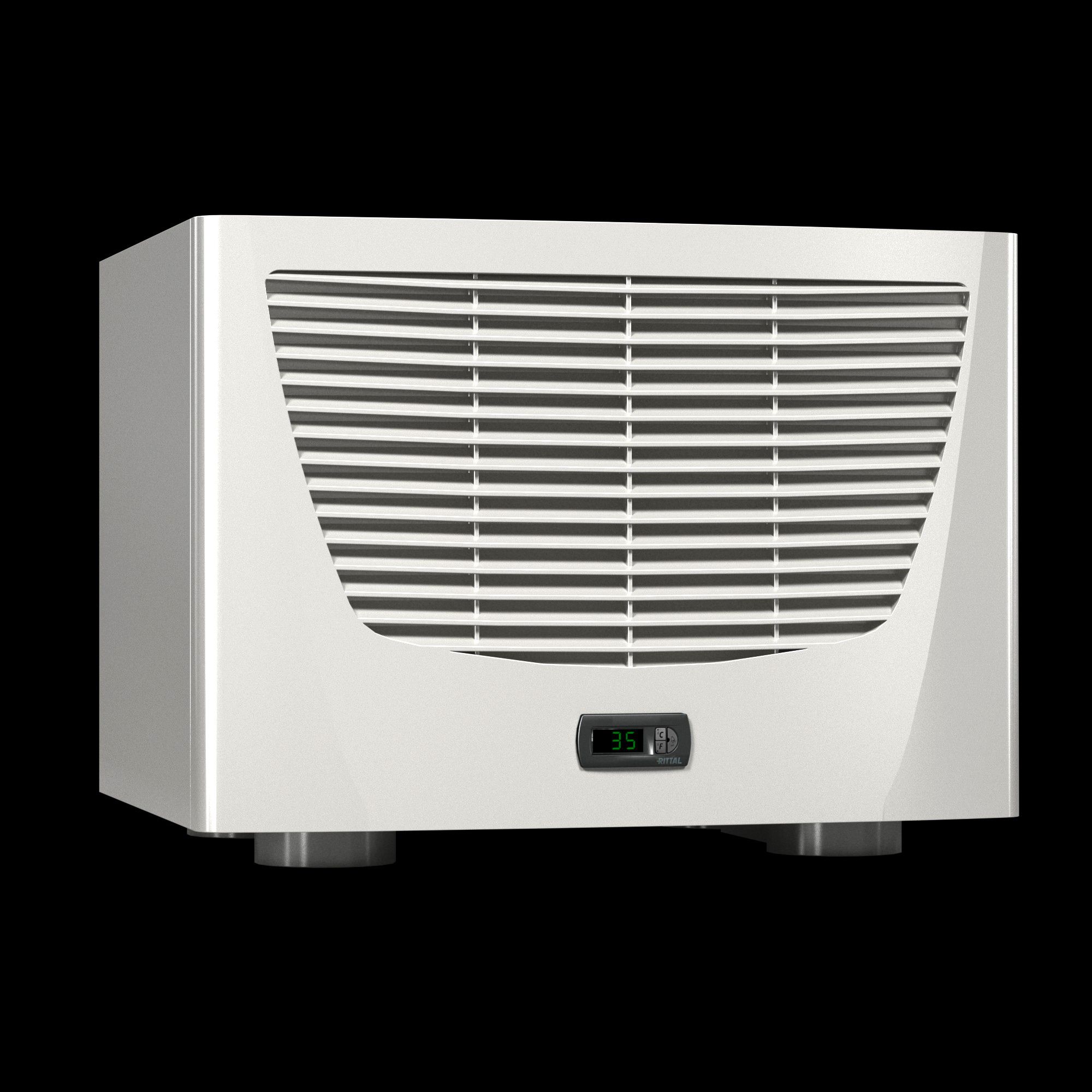 - Zum Einsatz in rauen Umgebungen und Temperaturbereiche bis +70 °C. Der Luft/Wasser-Wärmetauscher wird auf das Dach eines Schaltschrankes mit Hilfe flexibler Wasseranschlussmöglichkeiten aufgebaut.