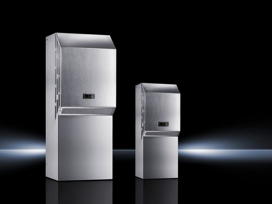- Energieeffiziente Blue e Wandanbau-Kühlgeräte mit standardmäßig integriertem e-Comfortcontroller und elektrischer Kondensatverdunstung. Schutzart NEMA 4X.