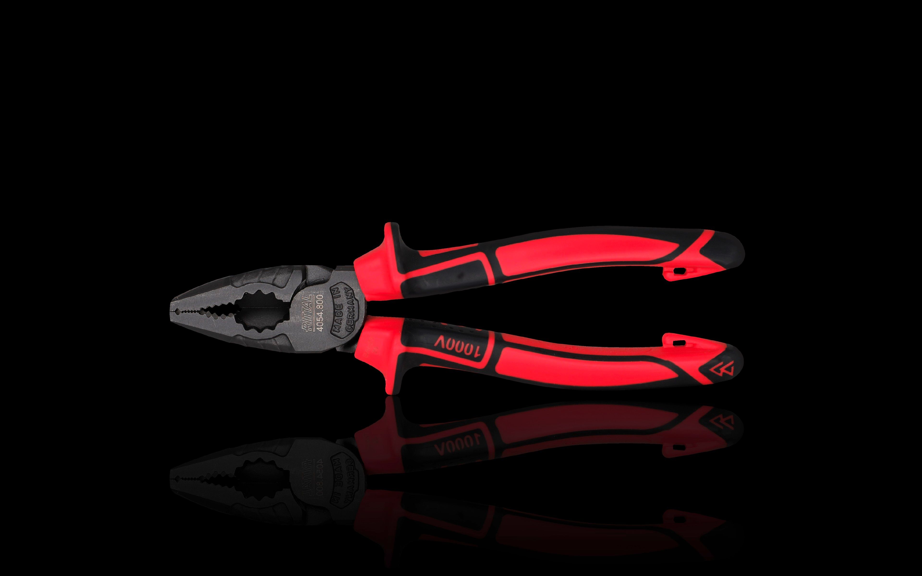 Kombizange mit isoliertem Griff, Greiffläche gezahnt, integrierter Ringschlüssel M8-M10