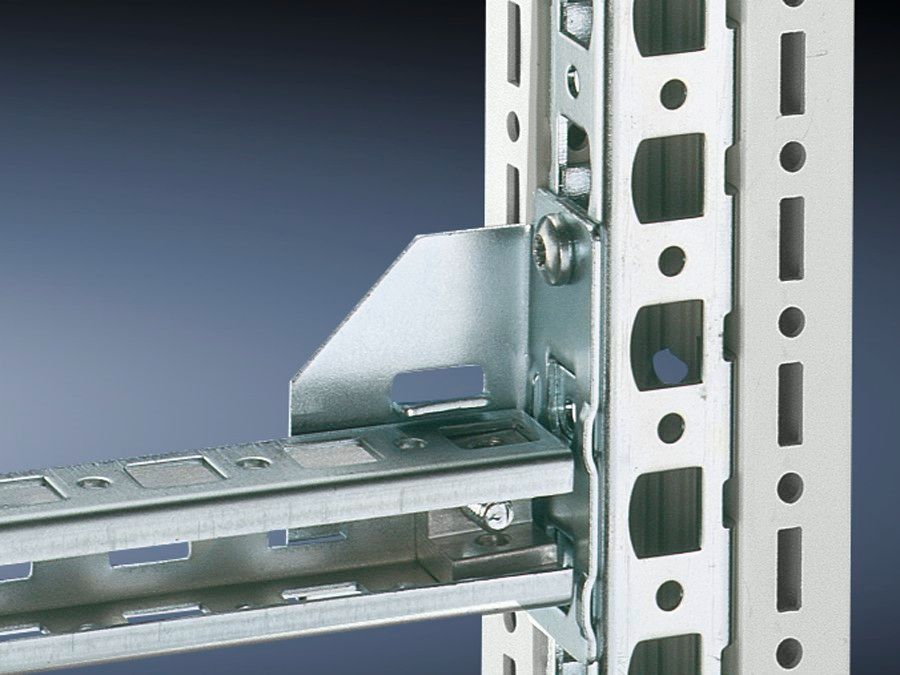 - Am vertikalen Schrankprofil: direkt über Kombi-Haltestücke TS, über Adapterschiene für PS-Kompatibilität in Verbindung mit Haltewinkel, Befestigungs-Haltestücken oder Kombi-Haltestücken PS.