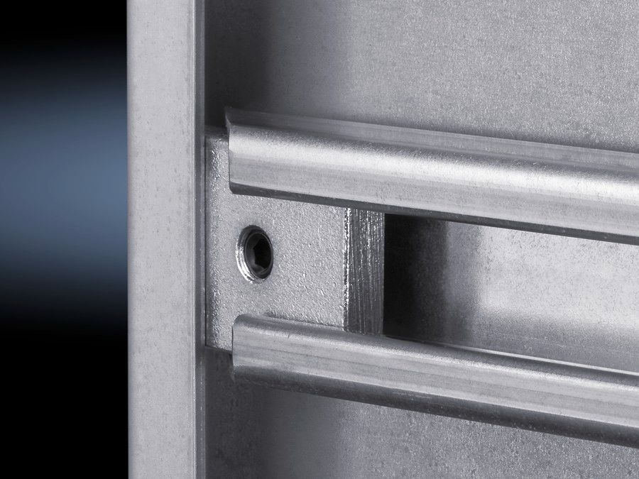 - Zusätzliche horizontale Querversteifung zur Schwingungsdämpfung und/oder nachträglichen Stabilisierung der breiten Montageplatten. Diese Verstrebung kann auch als Befestigungshilfe für schwere Bauelemente genutzt werden.