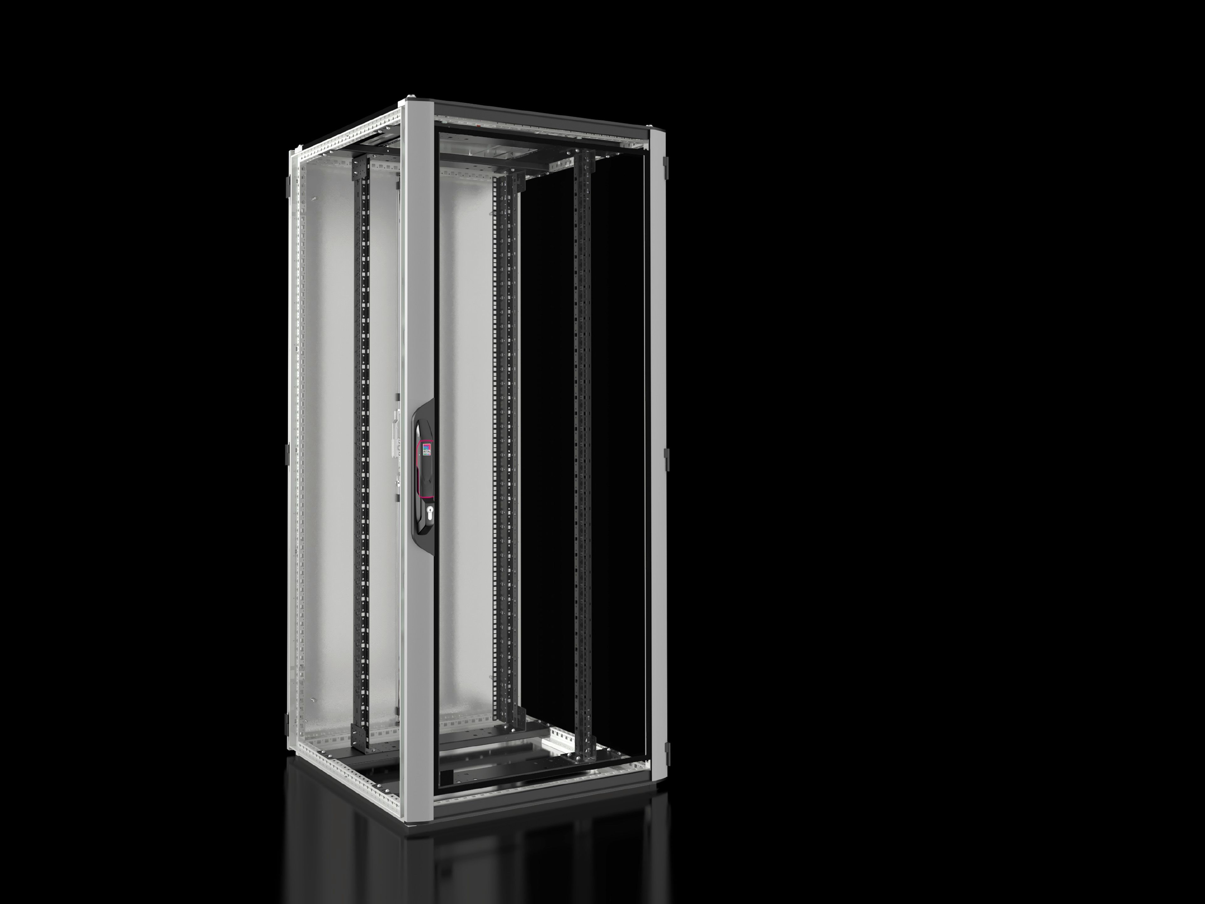 - VX IT Netzwerk-/Serverschrank standard, BHT: 800x1800x800 mm, 38 HE, Aluminium-Sichttür geschlossen vorne, Stahlblechtür geschlossen hinten, vertikal geteilt, 180°-Scharniere vorne und hinten