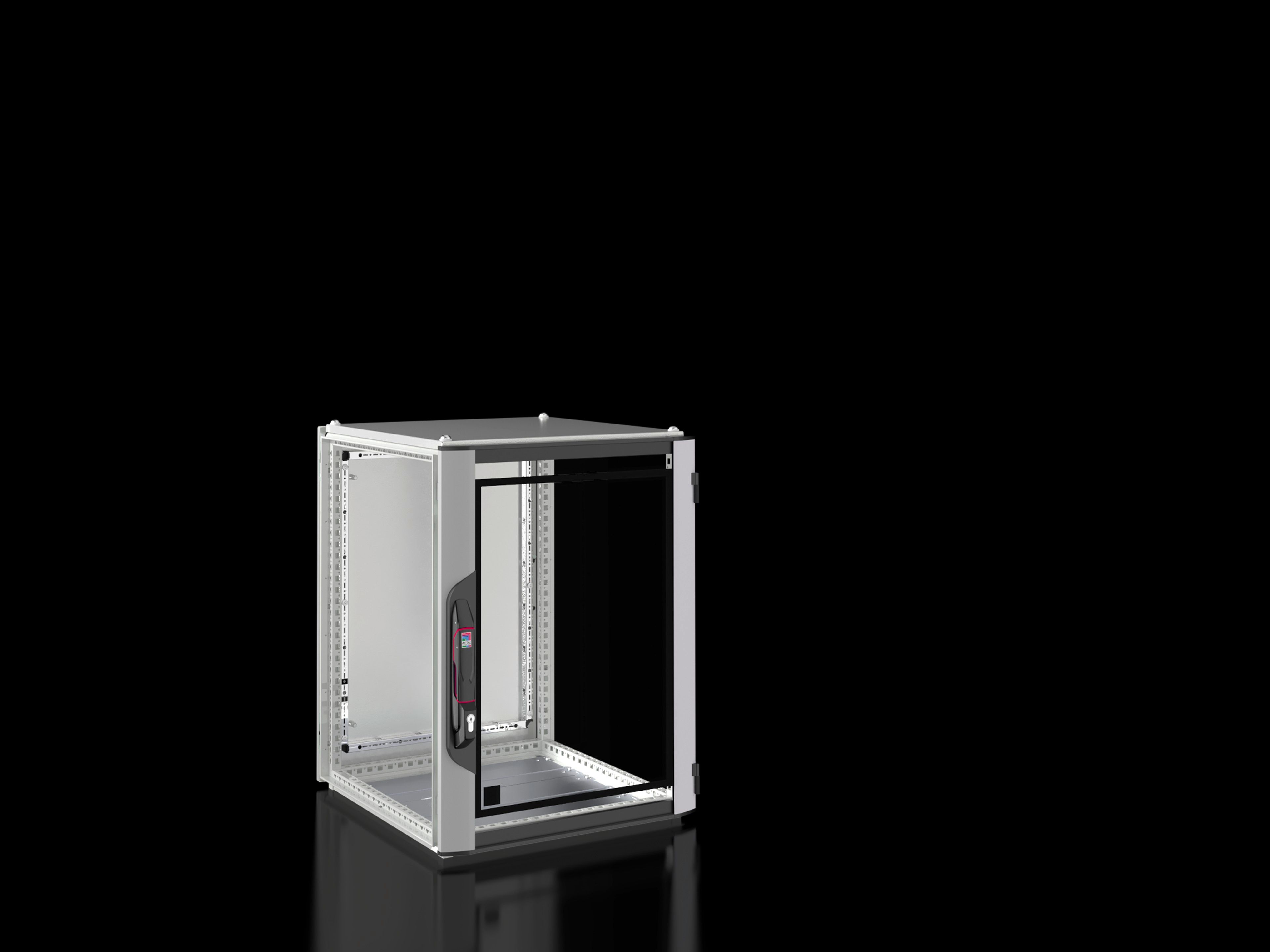 - VX IT Netzwerk-/Serverschrank, Leerschrank, BHT: 600x800x600 mm, IP 55, Aluminium-Sichttür geschlossen vorne, 180°-Scharniere, Stahlblechtür geschlossen hinten, 130°-Scharniere, Komfortgriffe für Profilhalbzylinder