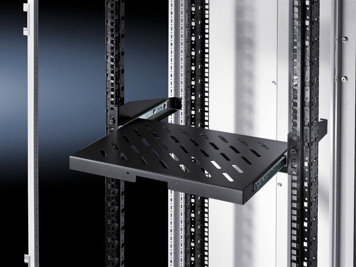 Geräteboden ausziehbar, 2 HE, 25 kg, Tiefe 300 mm, RAL 9005