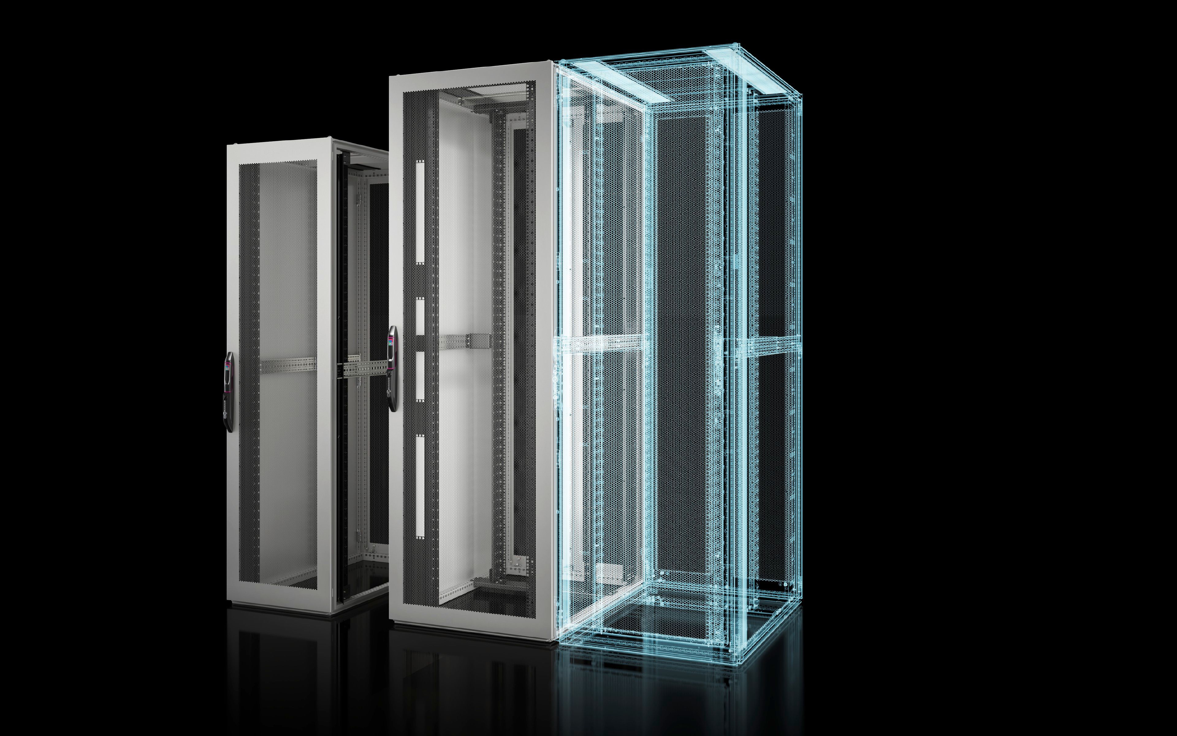 - Integrierte Luftleitbleche und eine Trennwand sorgen für eine optimale Luftführung, die Kabeltrasse ermöglicht eine einfache Kabelführung und der Komfortgriff inklusive Zahlencodeschloss sorgt für erhöhten Zugriffsschutz. Darüber hinaus ist der TX Colo optimal ausgelegt auf Raumklimatisierung dank belüfteter Türen.