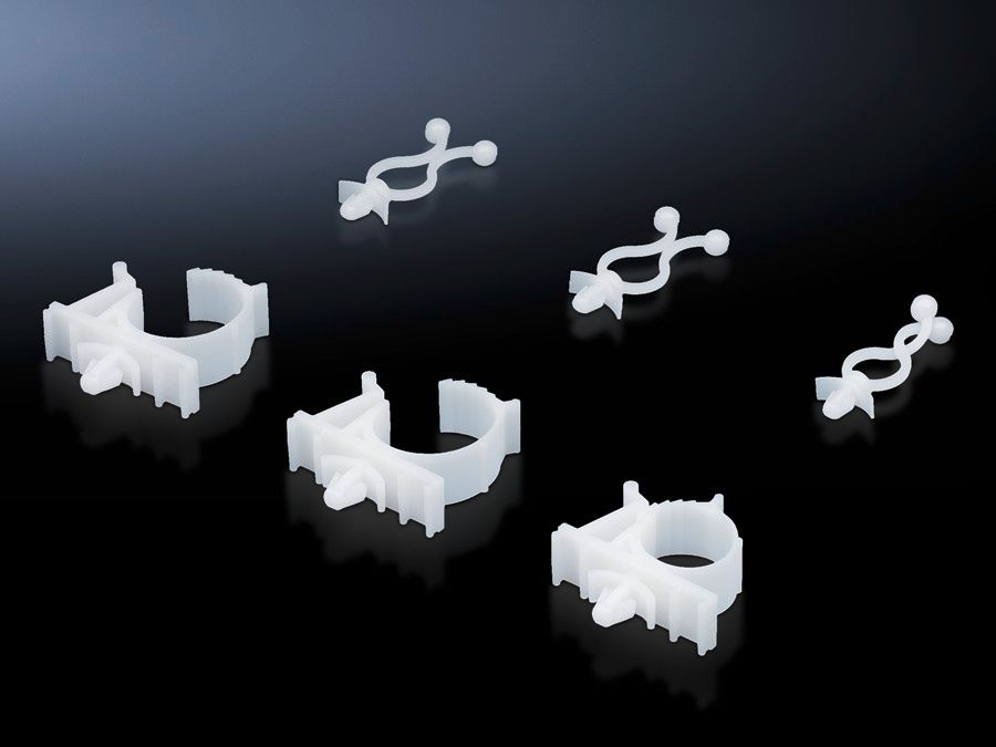 - Universell einsetzbare Kabelführung zur werkzeuglosen Schnellmontage an einer Systemlochung mit einem Lochdurchmesser von 4,5 - 4,7 mm.