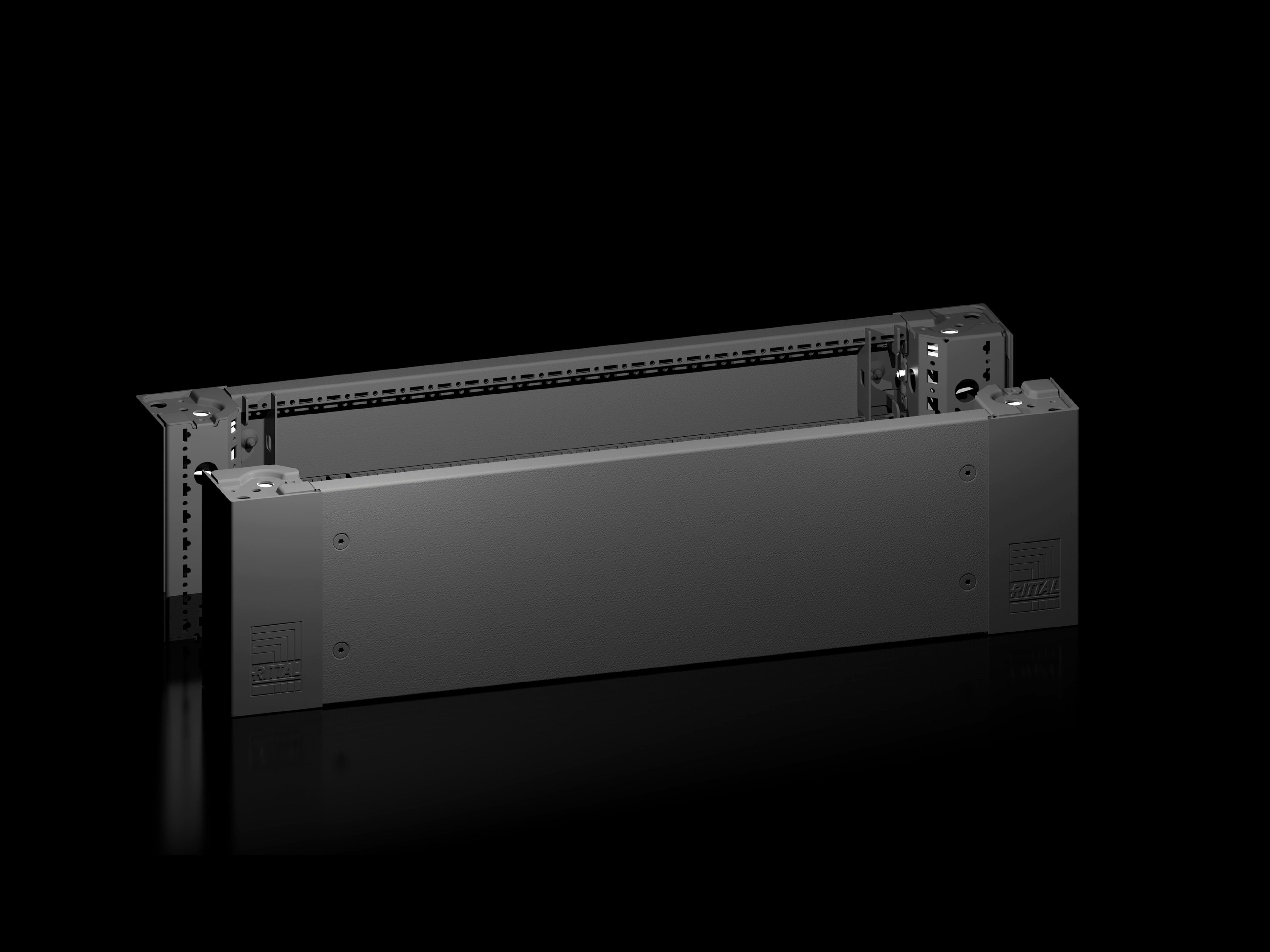 - Hochbelastbare Sockel-Eckstücke mit angeformter Selbstpositionierung zum Schaltschrank, je nach Anwendung mit oder ohne Sockel-Blende einsetzbar. Große Öffnungen im Sockel-Eckstück für besten Zugang zur Verschraubungsstelle, über Eck- und Anreihabdeckung aus Kunststoff abdeckbar.