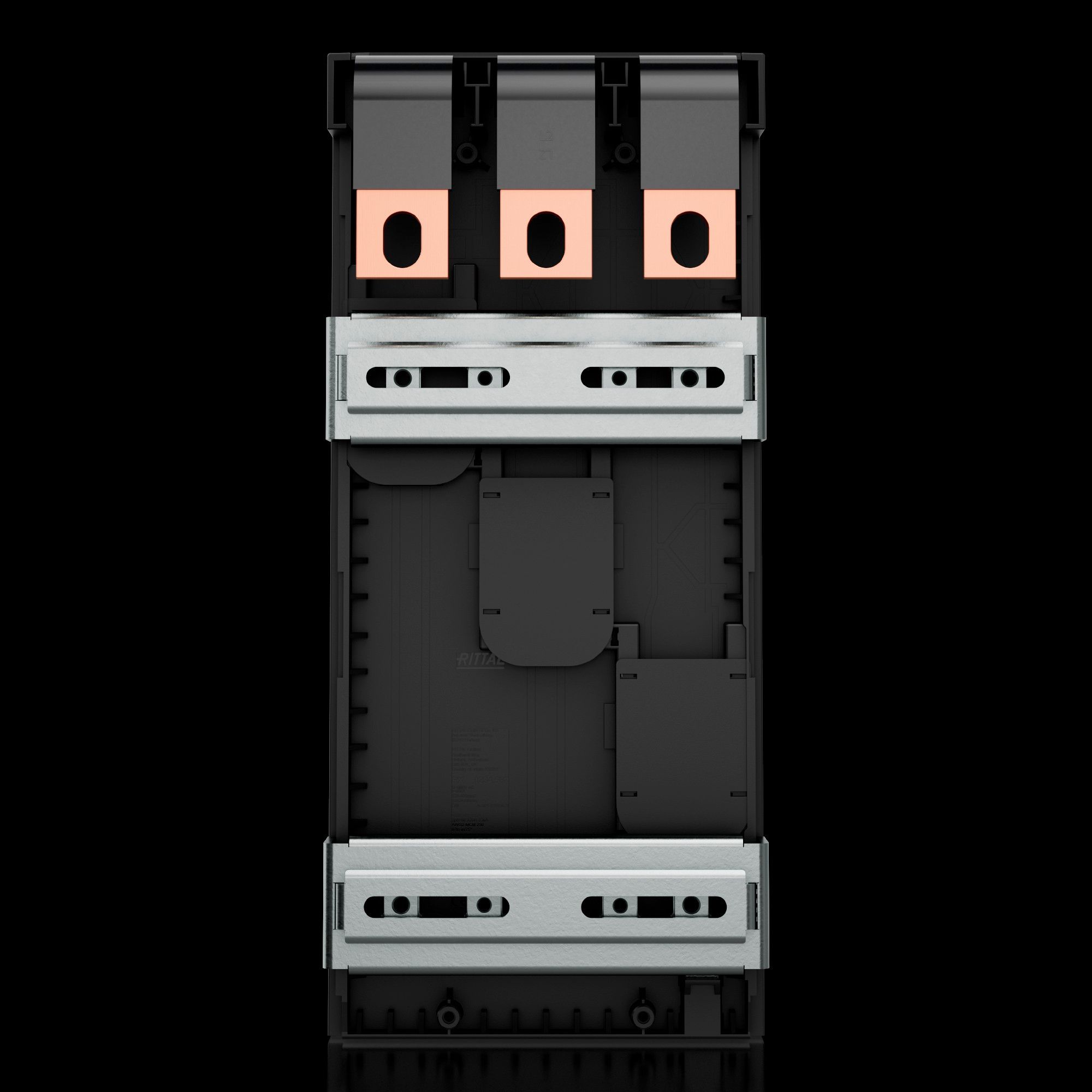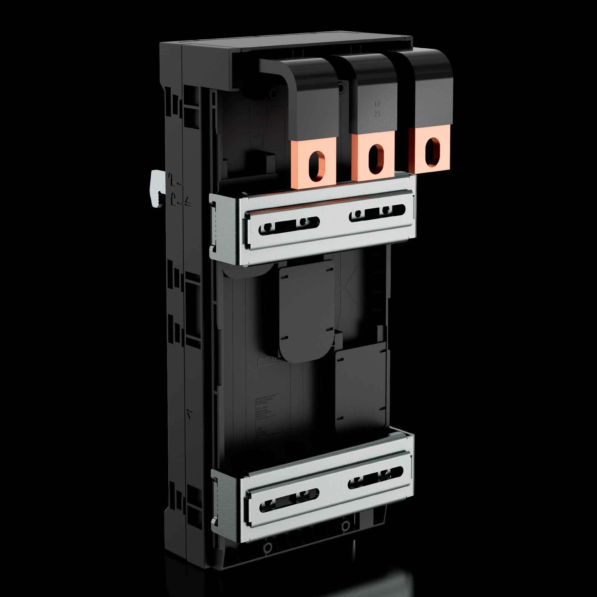 - RiLineX CB-Geräteadapter (3-polig, max. 400 A) für 60 mm Sammelschienensysteme. Die Gerätebreite beträgt 140 mm. Die "Universal"-Ausführung mit Schiebemuttern bietet höchste Flexibilität bei der Schaltermontage. Der Adapter verfügt über eine werkzeuglose Aufrastmontage. Der Leitungsabgang kann individuellen Erfordernissen durch einfachen Umbau des Abgangs unten oder oben angepasst werden.