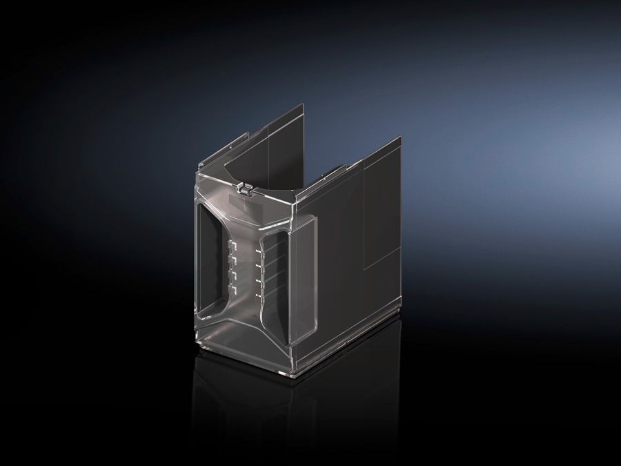- Kaskadierfähige Anschlussraum-Abdeckung zur Gewährleistung des Berührungsschutzes im Kabelanschlussbereich bei Verwendung von Kabelschuhen mit langen Presshülsen.