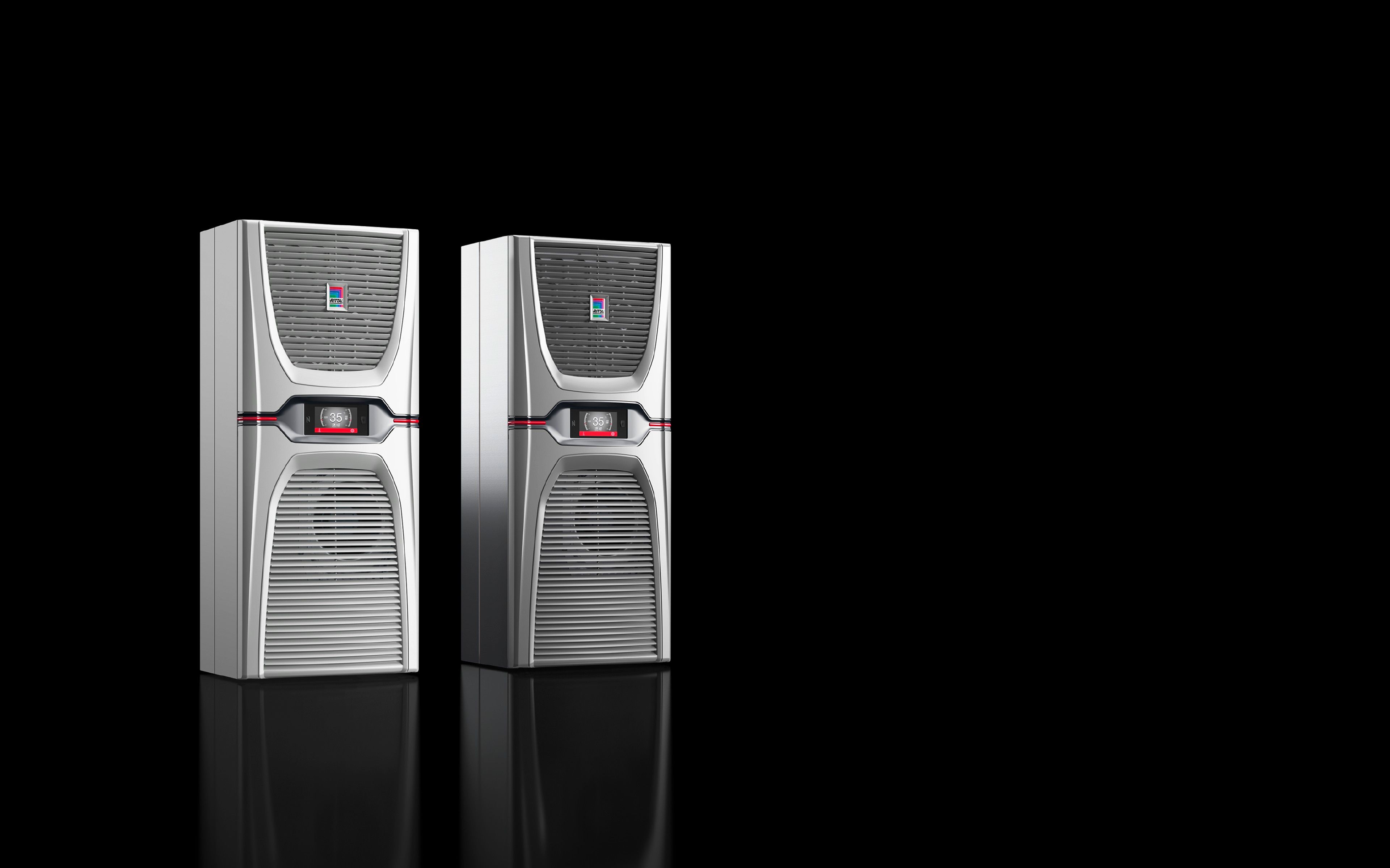 Sidemonteret køleenhed Blue e+ 1,6 - 5,5 kW Energieffektive vertikalmonterede køleenheder Blue e+ i effektklasserne 1600 W til 5500 W. Ved brugen af hastighedsregulerede komponenter og heat pipe-teknologi opnår de en gennemsnitlig energibesparelse på 75 %. Fås i stål og i rustfrit stål.
