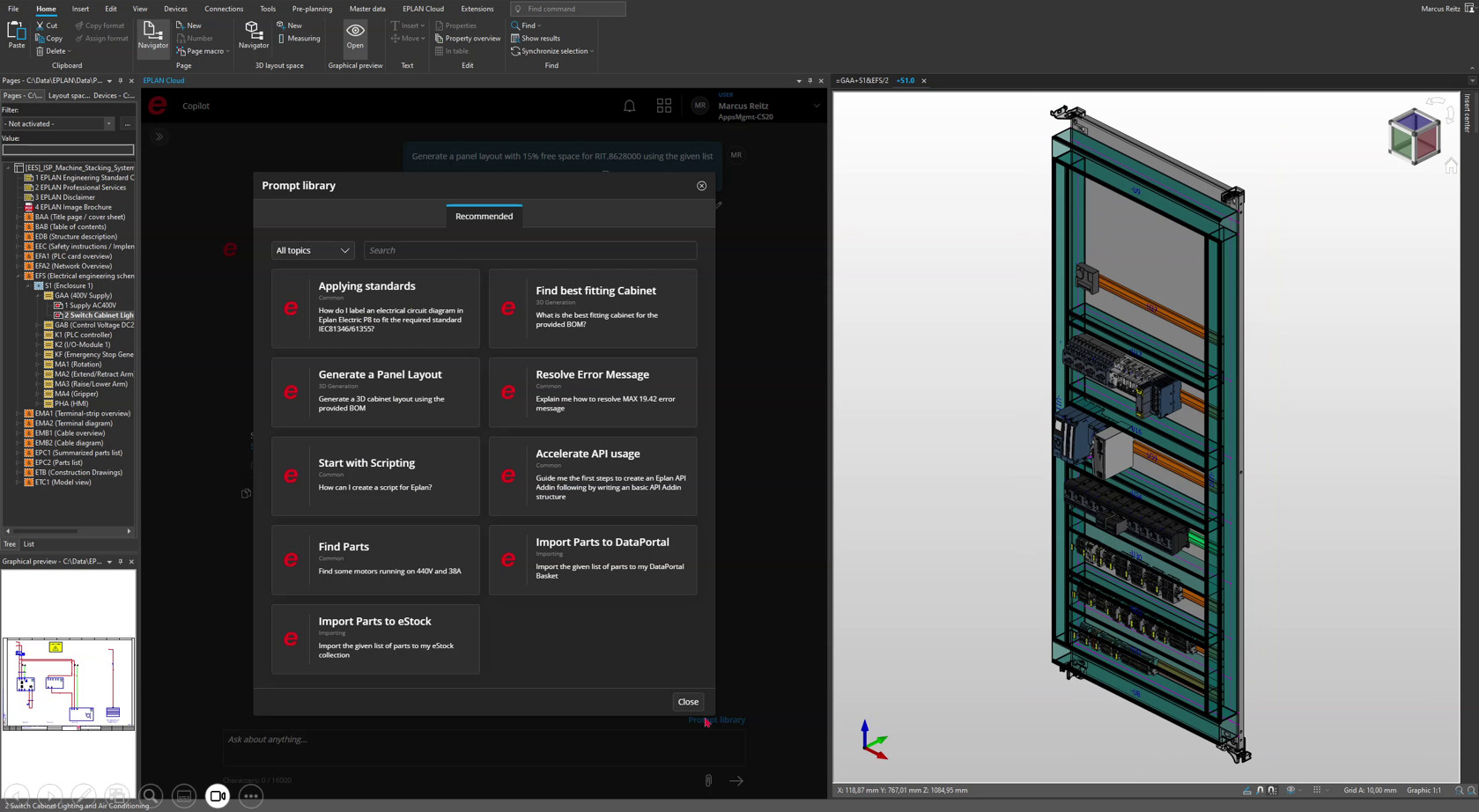 Eplan y Rittal ya han creado casos de uso, como la generación asistida por IA de diseños de placas de montaje basados en Microsoft Azure OpenAI Service. Eplan está trabajando con Siemens en la integración integral de gran alcance, que digitalizará y automatizará todo el proceso de ingeniería en el futuro. Especialmente en el campo de la tecnología de automatización, hay considerables ganancias de eficiencia, como la reducción del tiempo de planificación. Las herramientas impulsadas por IA permiten a los desarrolladores simular en pocos segundos varios escenarios que antes habrían llevado días o incluso semanas. Esto no solo ahorra tiempo, sino que también mejora significativamente la calidad de los resultados. El objetivo es claro: hacer que la IA pueda utilizarse en las soluciones existentes de acuerdo con los requisitos específicos de la ingeniería de plantas y automatizar todo el proceso de ingeniería.