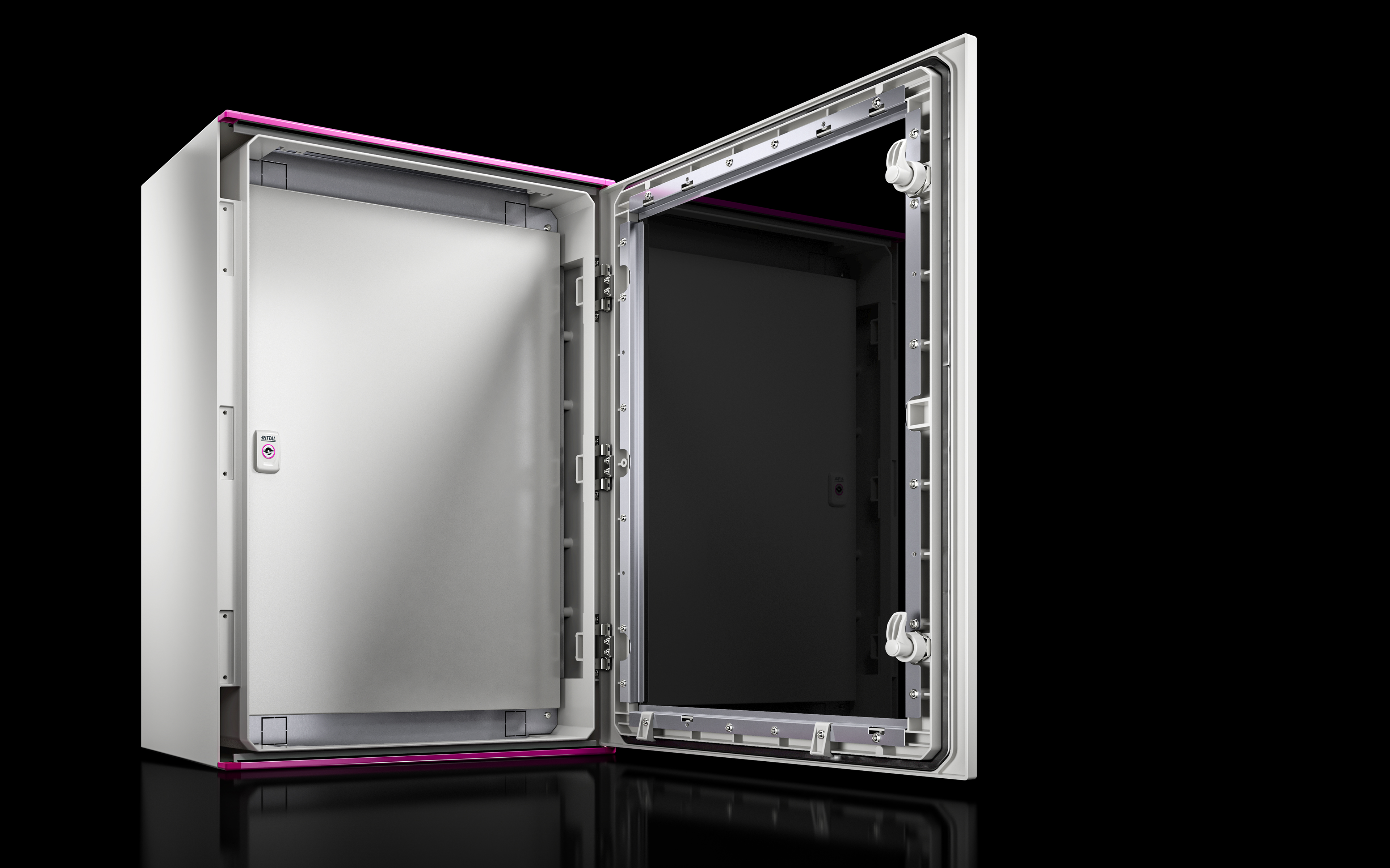 Las nuevas puertas interiores de Rittal permiten separar los niveles técnico y operativo en el armario. Por un lado, permite proteger los componentes instalados en la parte posterior del armario y, por el otro, impide al operador acceder a los componentes bajo tensión. La superficie interior de la puerta se puede utilizar como nivel de montaje adicional para la instalación de pulsadores, pantallas, etc. y, por lo tanto, ofrece un mayor espacio de montaje en el armario. En función de la aplicación y los requisitos, la profundidad a la que se instala la puerta interior en el armario puede variar y, por lo tanto, permite un montaje flexible.