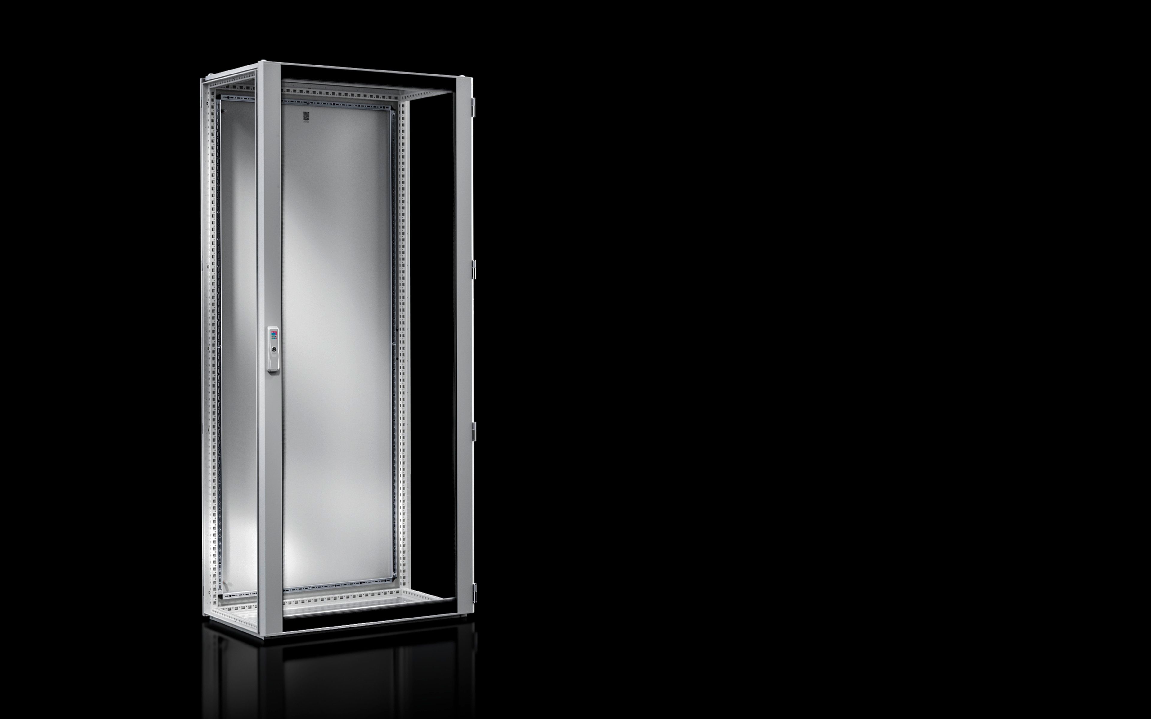 The VX basic enclosure with glazed door for industrial applications: Enclosure frame with glazed door at the front, rear door, roof plate, divided gland plates. Perfectly suited to efficient enclosure interior installation.