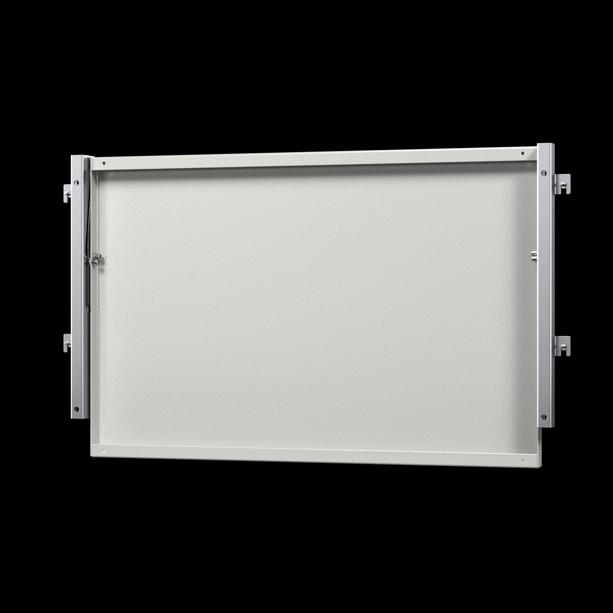 Adatto per unità di programmazione, periferiche ecc., predisposto per il montaggio sul telaio della porta. Per interventi di manutenzione il ripiano è apribile velocemente a ribalta, offrendo un'ampia superficie di appoggio. Dopo l'uso può essere ripiegato senza creare ingombro.