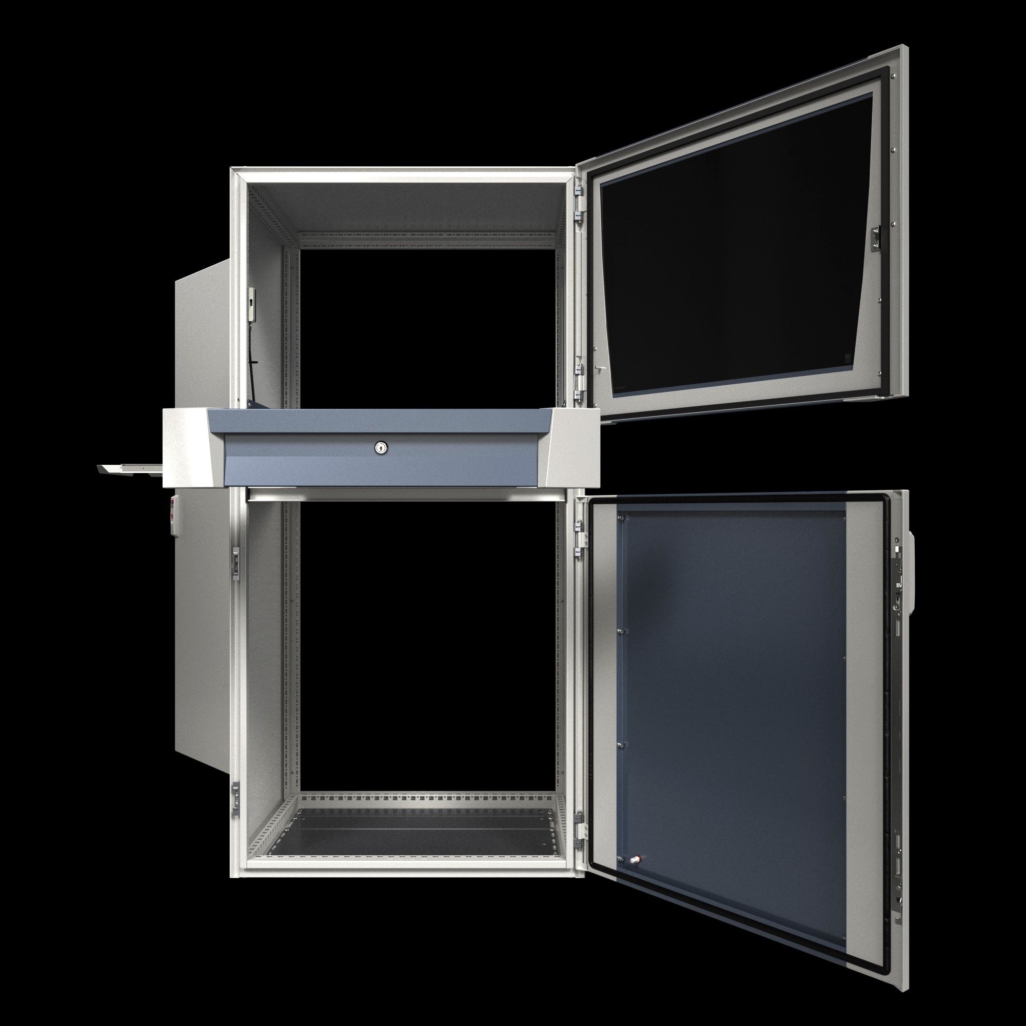 - Secure accommodation of all PC components, from monitors, to PCs, to keyboards. For ultimate ease of operation in a modern design. Perfect protection from humidity and dirt, temperature fluctuations and unauthorised access.