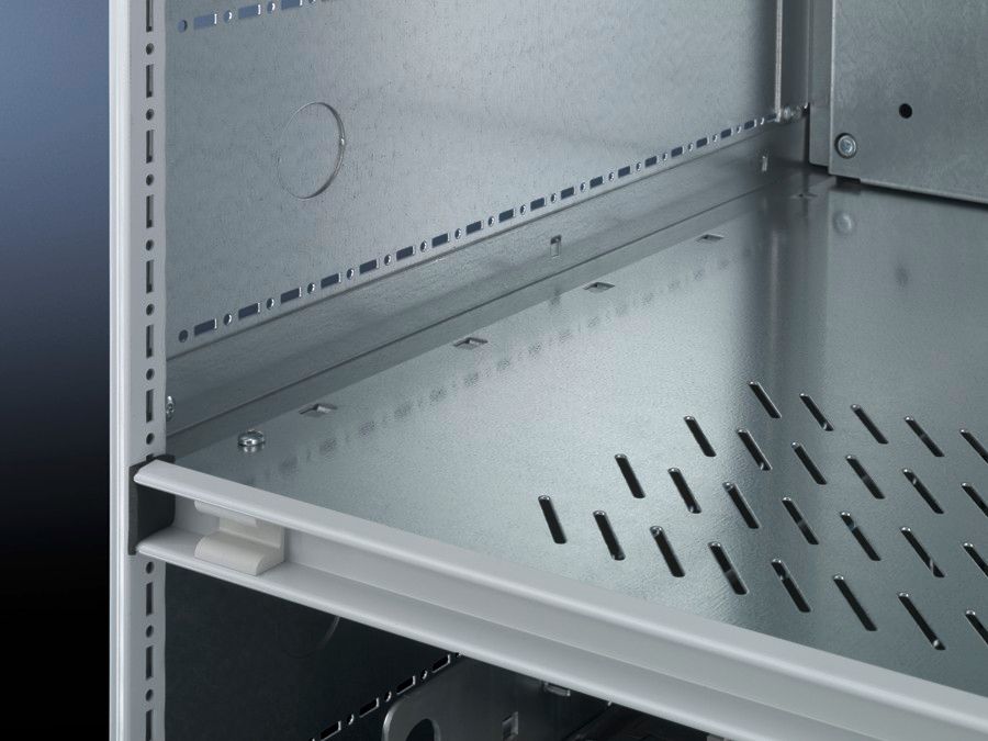 Ángulo de montaje para el separador para compartimentaciónn Se puede fijar al bastidor TS, al perfil bastidor o entre un perfil de bastidor y una construcción auxiliar, permite el desplazamiento de separadores de áreas funcionales.