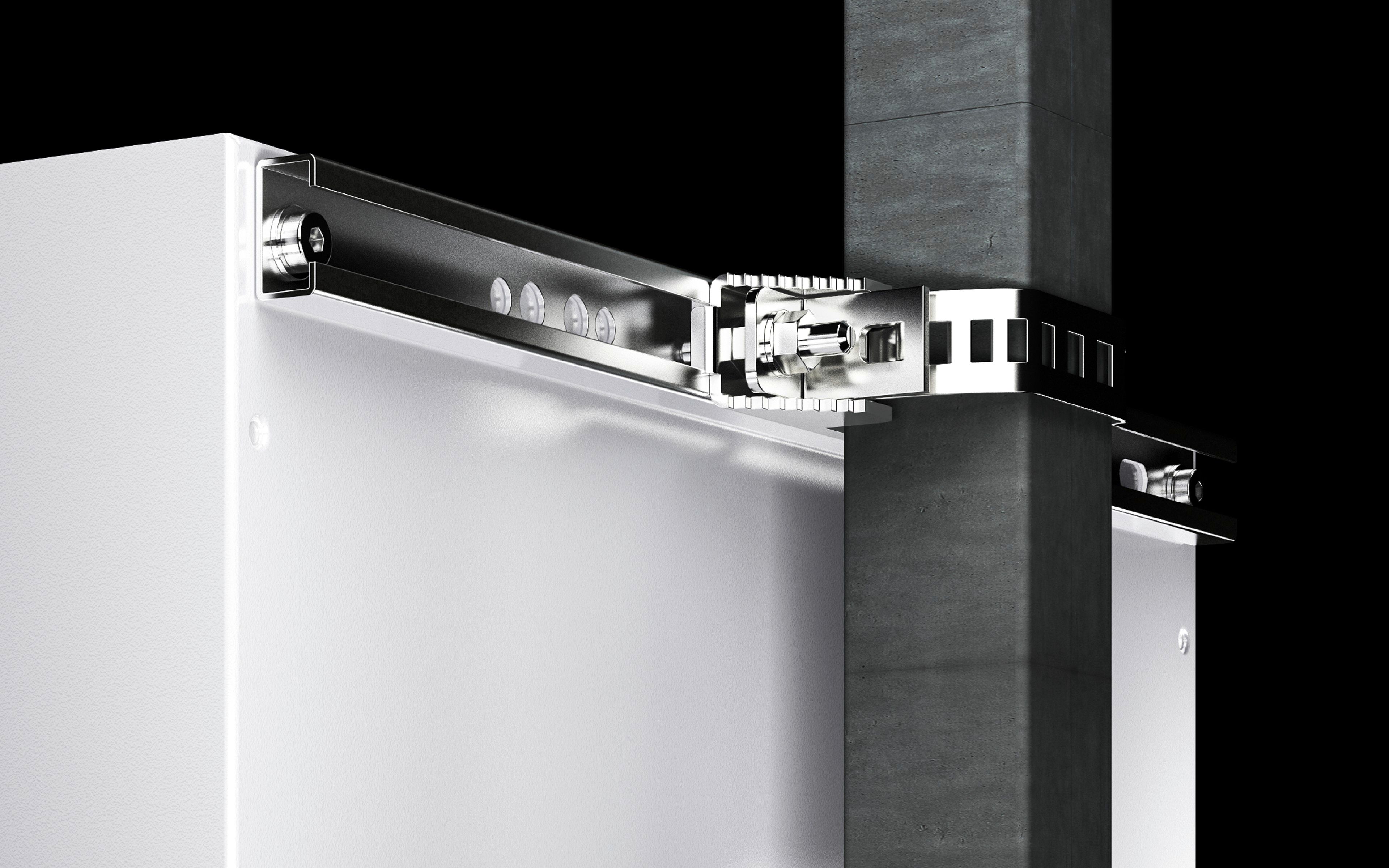 Fijación a postes para cajas murale AX, KX, AX de poliéster, AX IT, CS Para una fijación cómoda y segura a postes redondos o cuadrados.