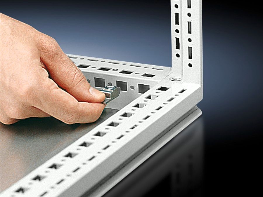 - w szafach i szynach z systemem otworów prostokątnych 12,5 x 10,5 mm