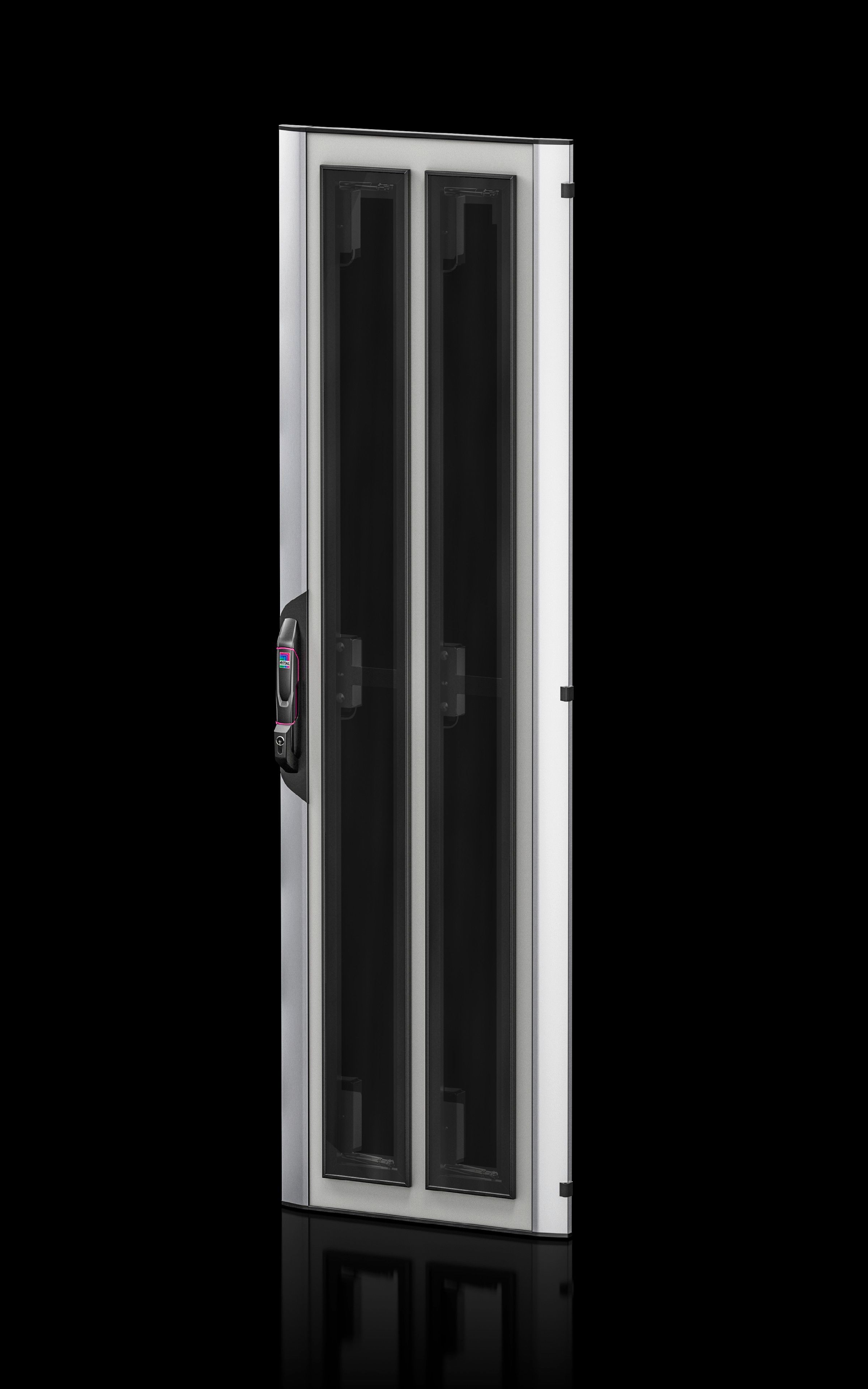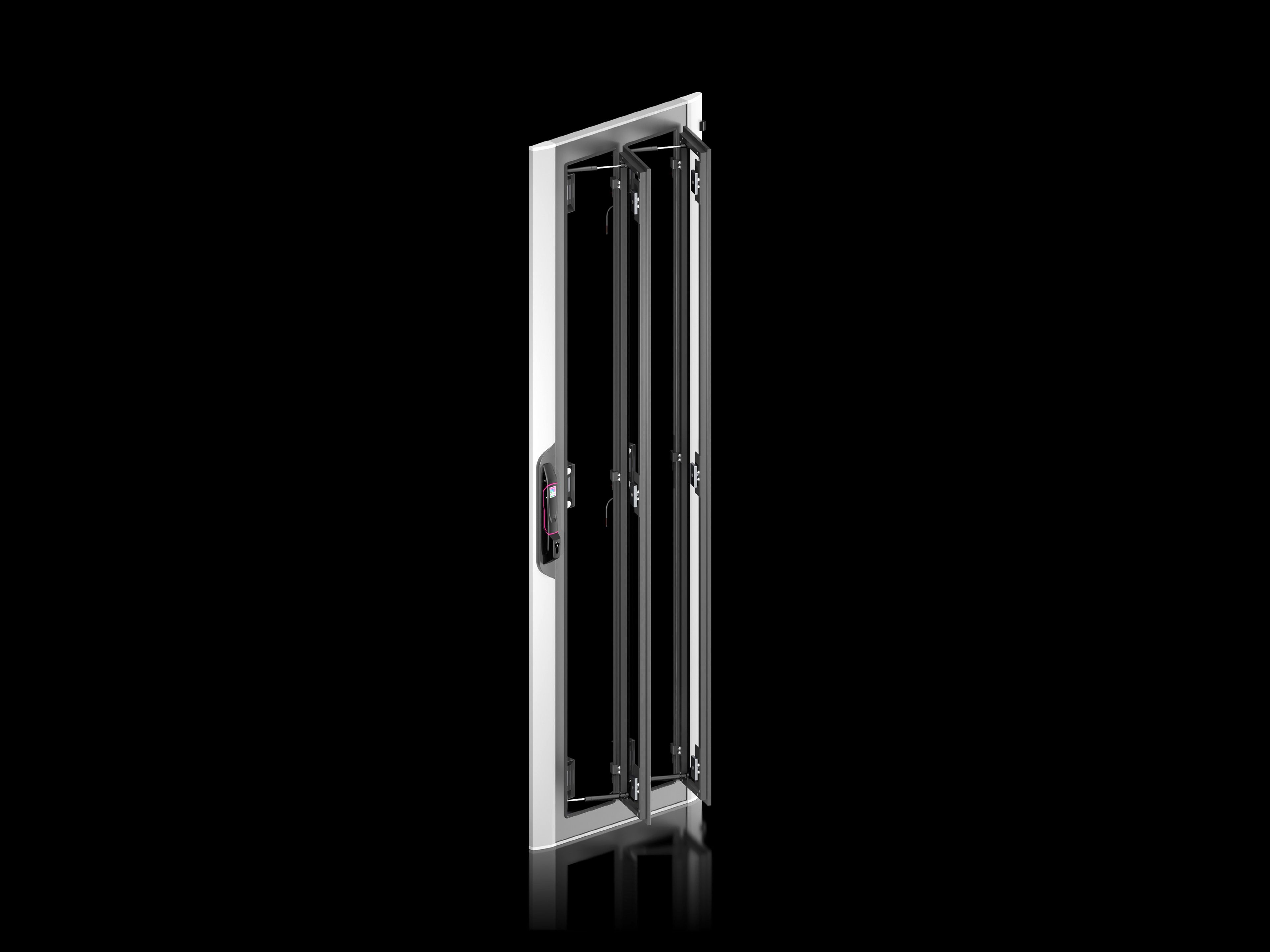 - Ze zintegrowanym klapami wentylacyjnymi do funkcji automatycznego otwierania w przypadku alarmu lub braku zasilania. Drzwi przeszklone do systemu automatycznego awaryjnego otwierania zastępują standardowe drzwi VX IT.