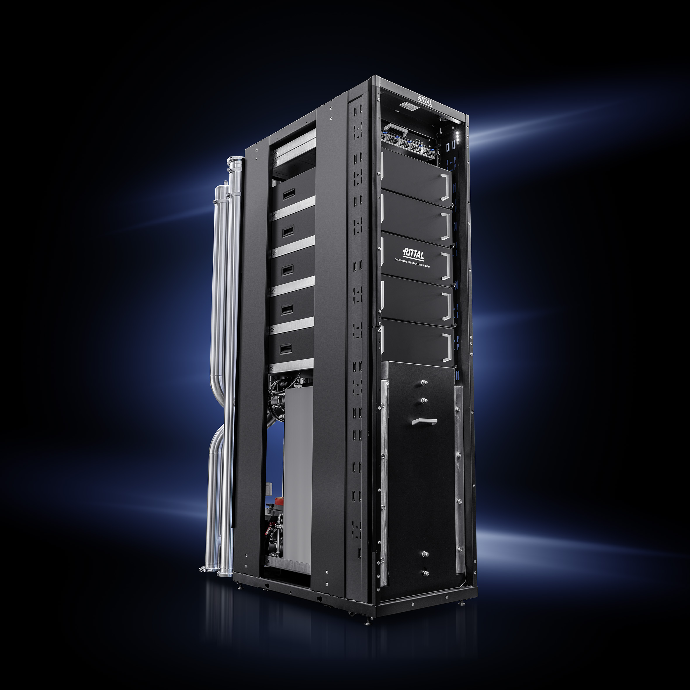 - Rittal je razvio modularnu jedinicu za distribuciju hlađenja (CDU) koja isporučuje rashladnu snagu od preko 1 MW. Ona koristi direktno hlađenje tečnošću na bazi vode – i time predstavlja primer novih tehnologija IT infrastrukture koje služe kao pokretači za primene veštačke inteligencije (AI).